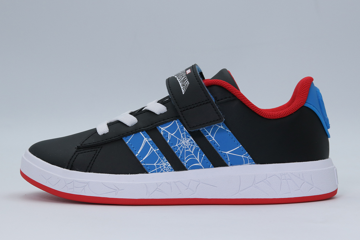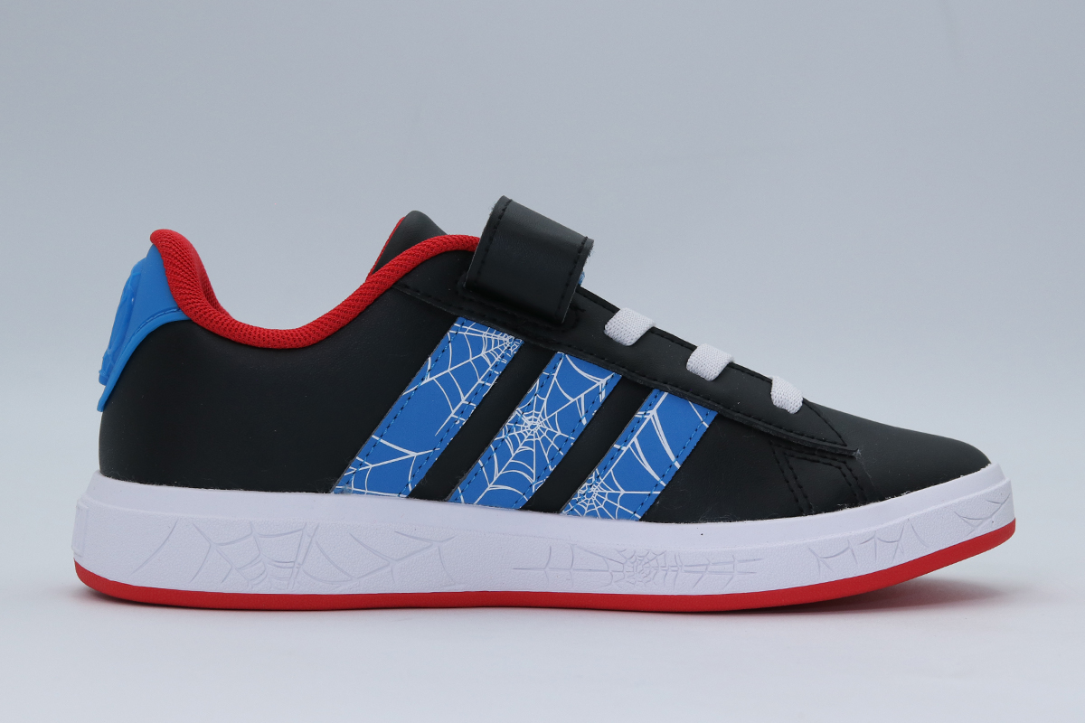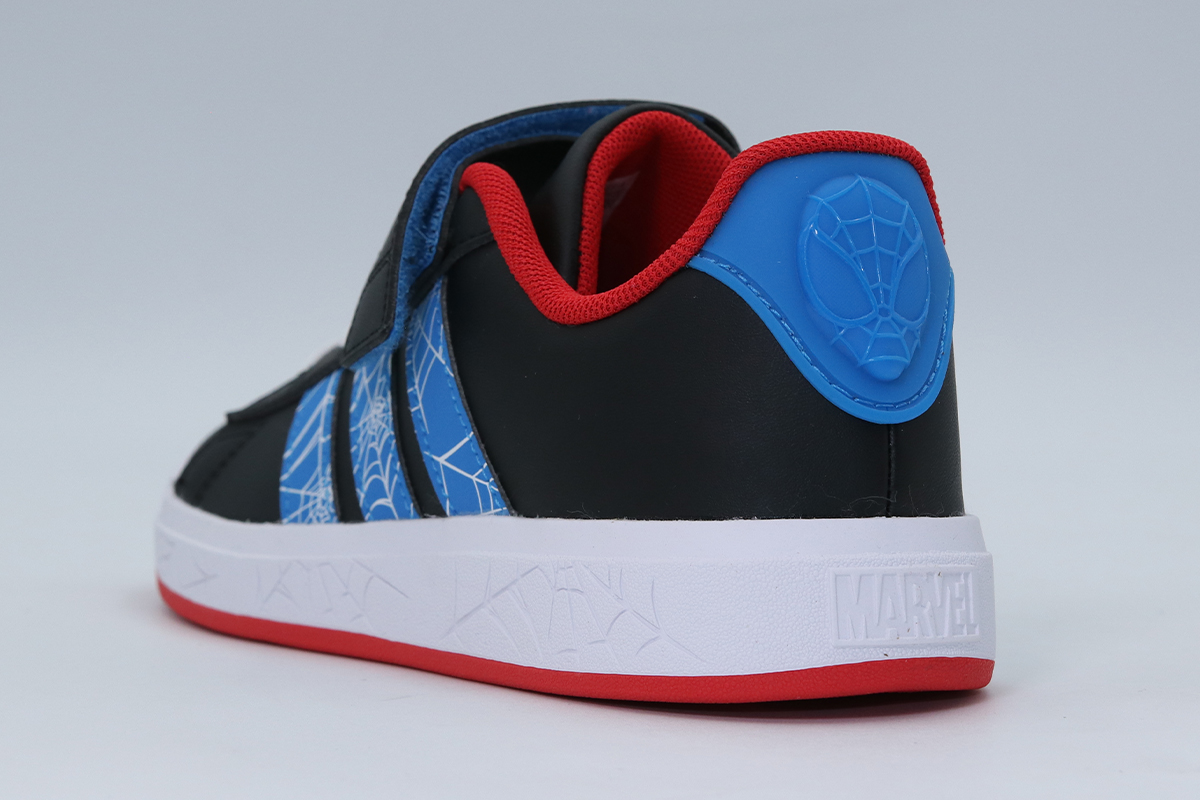 Ανακάλυψε τα Adidas Performance Marvel Spider-Man Grand Court παιδικά sneakers σε μαύρο, μπλε, κόκκινο και λευκό χρώμα, ιδανικά για τους μικρούς ήρωες που αγαπούν τις περιπέτειες.