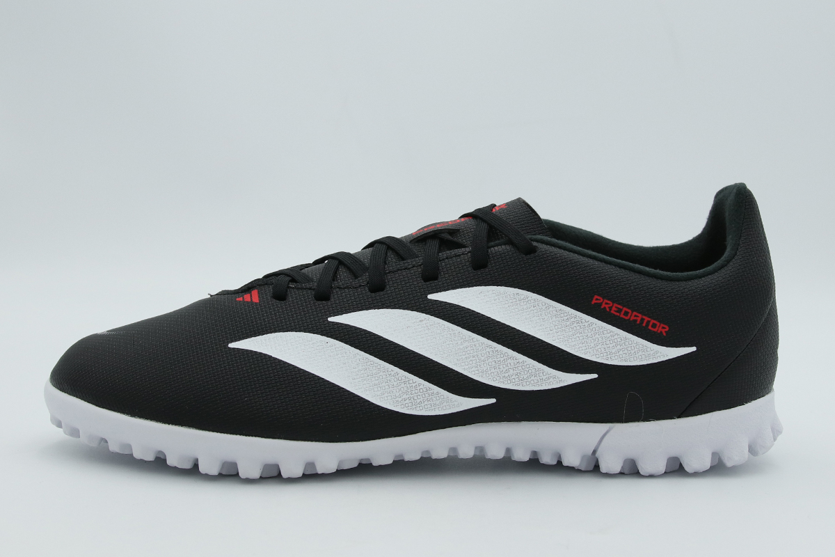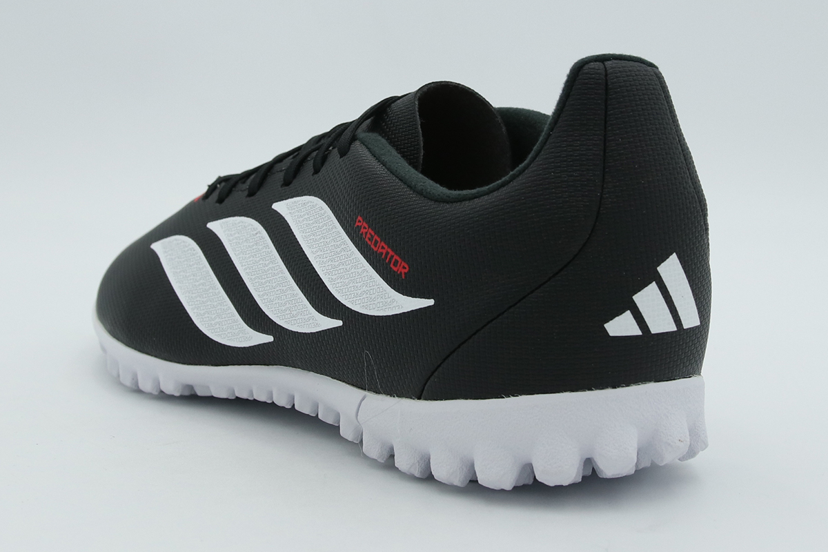 Πάρε τον έλεγχο του παιχνιδιού με τα Adidas Performance Predator Club Turf παιδικά ποδοσφαιρικά παπούτσια σε μαύρο, λευκό και κόκκινο χρώμα, σχεδιασμένα για νεαρούς ποδοσφαιριστές που θέλουν ακρίβεια, σταθερότητα και αυτοπεποίθηση σε κάθε επαφή με την μπάλα.