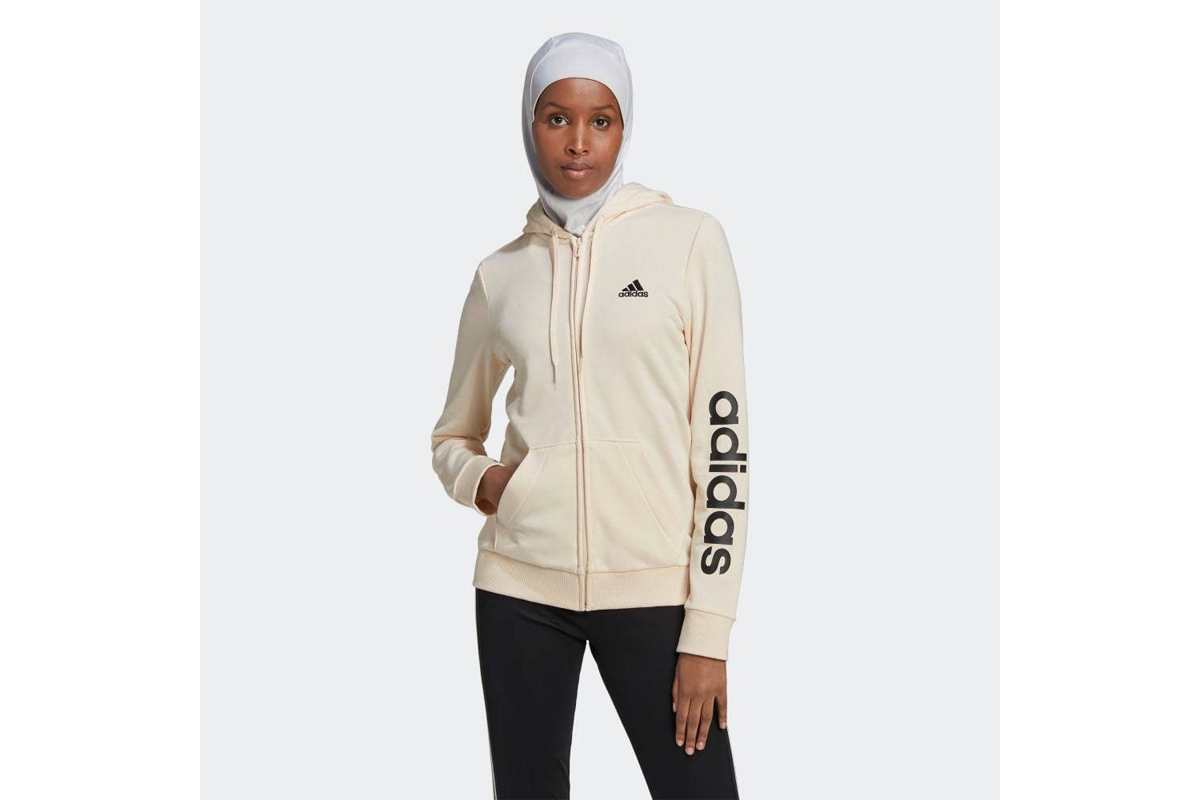 Απόλαυσε τη ζεστασιά, την άνεση και το στυλ που σου αξίζει με τη γυναικεία ζακέτα με κουκούλα Adidas Performance Linear French Terry σε εκρού χρώμα.