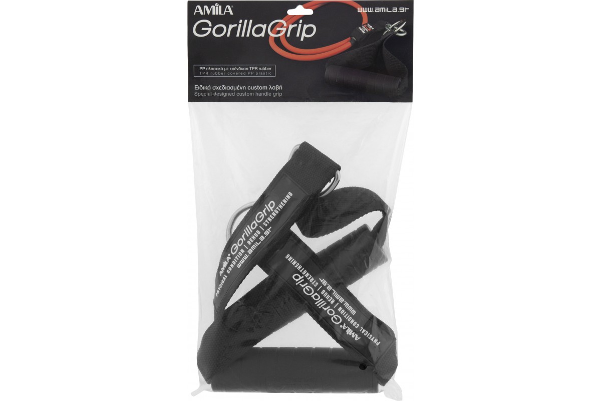 Η λαβή Gorilla Grip από την AMILA είναι ίσως η καλύτερη λαβή που έχετε πιάσει ποτέ. Κατασκευασμένη από σκληρό πλαστικό εσωτερικά, ενισχυμένη εξωτερικά από λάστιχο, για να έχετε την αντιολισθητικότητα που χρειάζεστε, ενώ ταυτοχρόνως αντέχει στην επαφή με τον ιδρώτα χωρίς τον απορροφά προκαλώντας πρόβλημα του «πανιάσματος». Όποιος δοκιμάσει τη συγκεκριμένη λαβή δύσκολα θα ξαναγυρίσει πίσω στις κλασικές με επένδυση foam ή ακόμα και σε αυτές που έχουν τα γυμναστήρια.