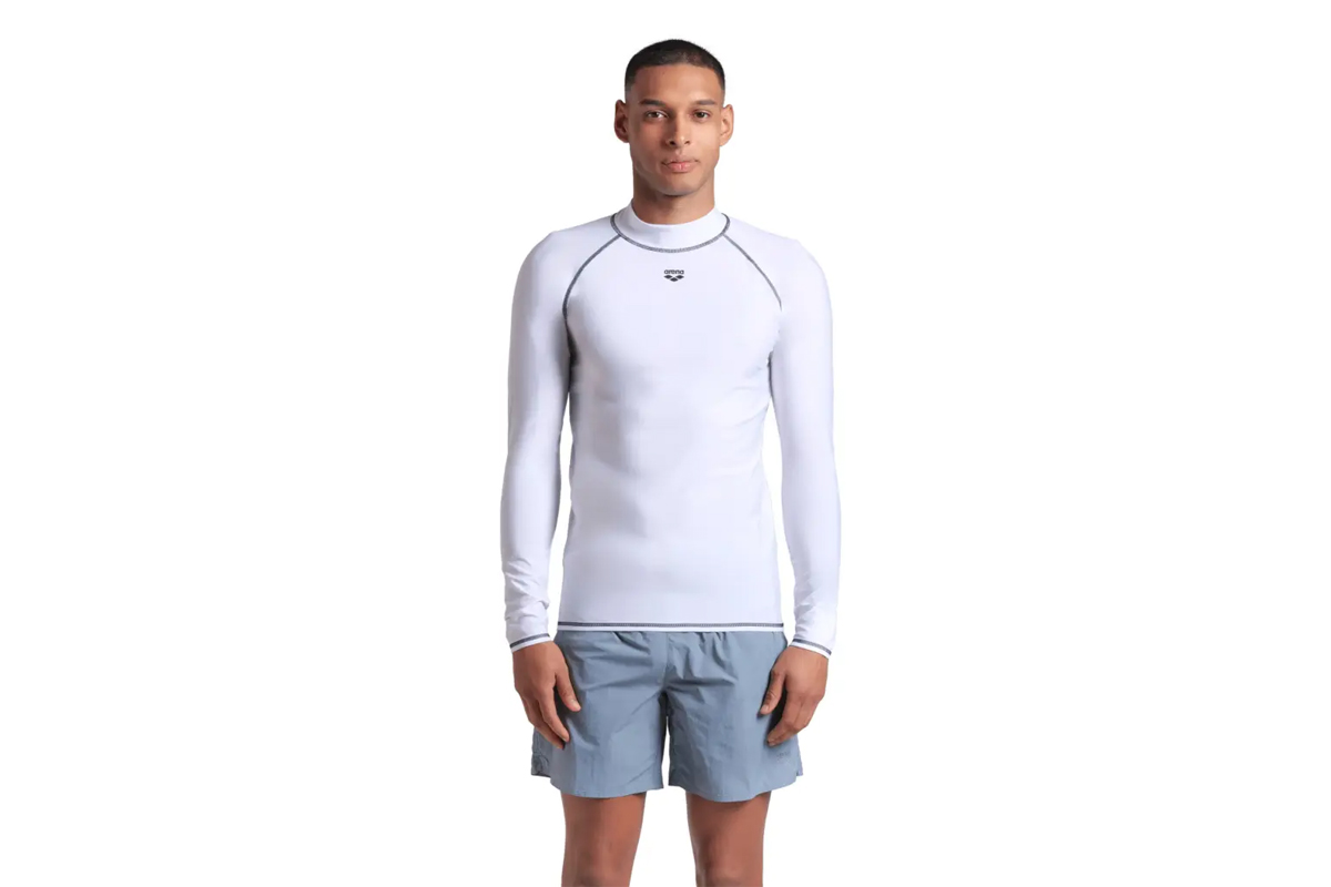 Ανακάλυψε την απόλυτη προστασία και άνεση στο νερό με την Arena Rash Vest ανδρική μακρυμάνικη μπλούζα UV Protection σε λευκό χρώμα.