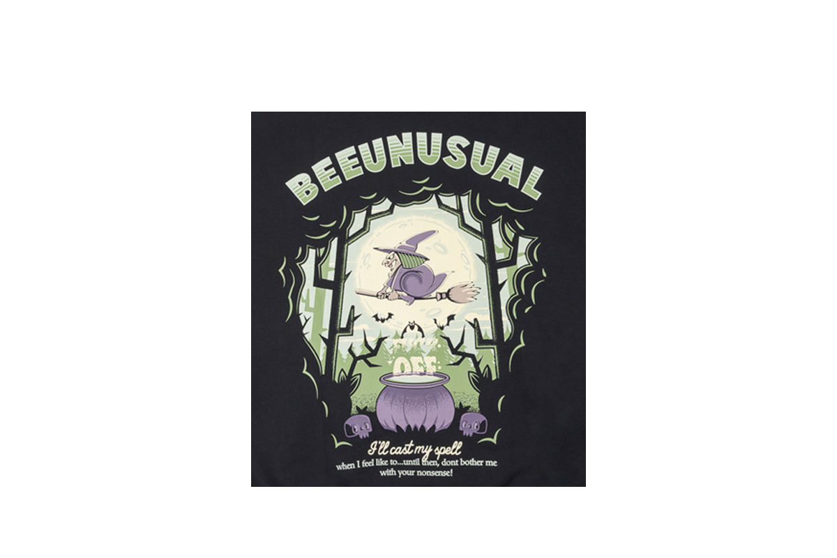 Το βαρύ βαμβακερό ζέρσεϊ χαρίζει σταθερή αίσθηση και ανθεκτικότητα, ενώ οι στάμπες μπροστά και πίσω με φιγούρες μάγισσας κάνουν το Bee Unusual hoodie να ξεχωρίζει στο streetwear look σου.