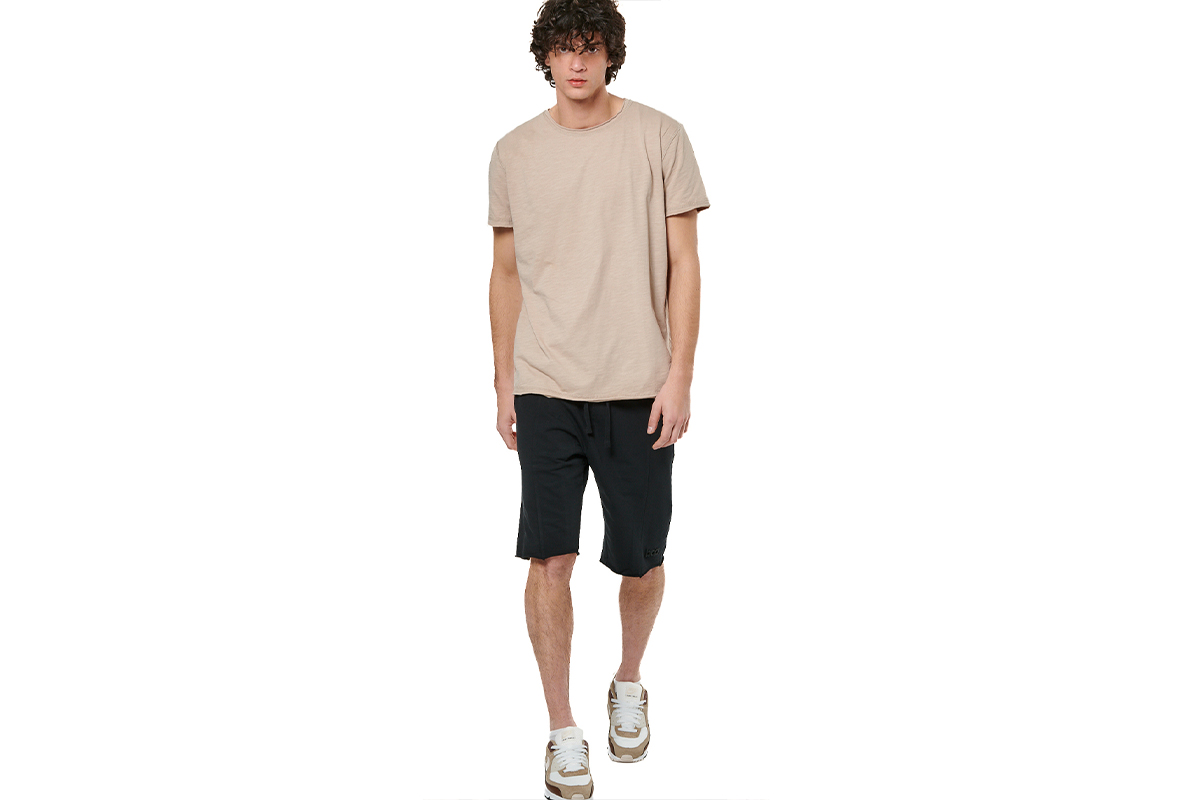 Το κοντομάνικο σχέδιο και η στρογγυλή λαιμόκοψη προσδίδουν στο μπλουζάκι έναν κλασικό και διαχρονικό χαρακτήρα, ενώ τα ακατέργαστα άκρα στο τελείωμα δίνουν μια μοντέρνα αίσθηση που ξεχωρίζει.