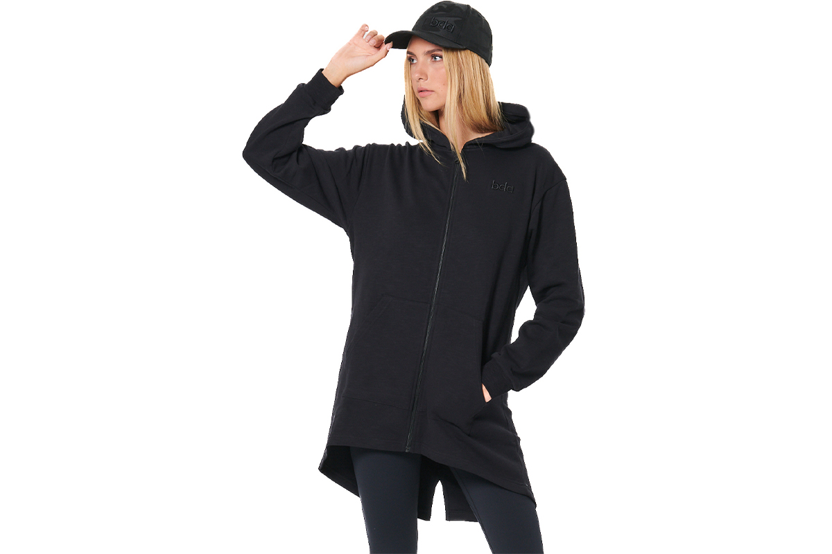 Body Action Women S Slub Hooded Fishtail Jacket (071531 BLACK-01)