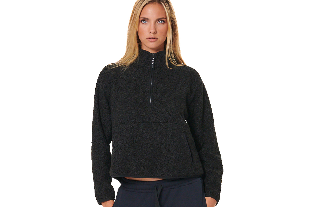 Body Action Womens Oversize Boucle-Fleece Half-Zip (061529 BLACK-01)