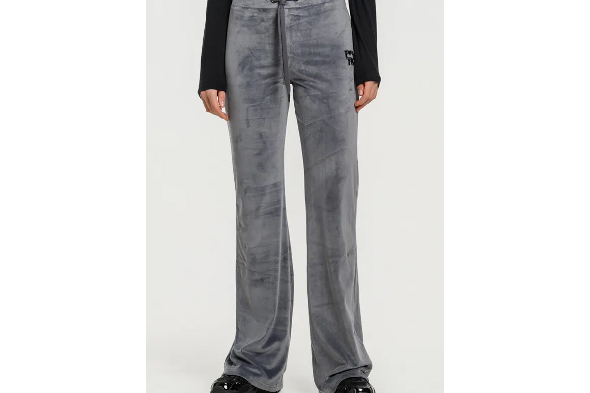 Body Talk Row Γυναικείο Βελουτέ Παντελόνι Φόρμας Γκρι Σκούρο