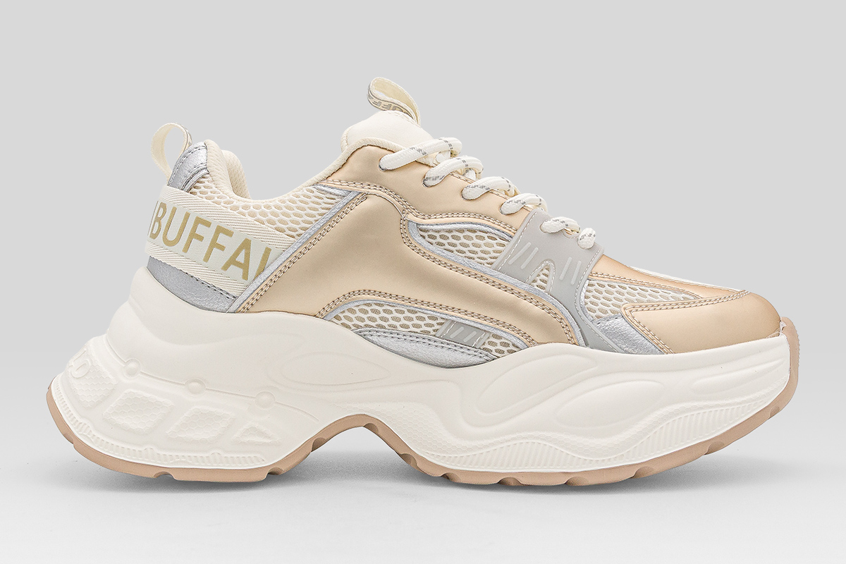 Τα Buffalo Yuno One sneakers σε εκρού, χρυσό και ασημί χρώμα είναι η ιδανική επιλογή για να απογειώσεις το καθημερινό σου στυλ με ένα δυναμικό, σύγχρονο και απόλυτα μοντέρνο chunky design.