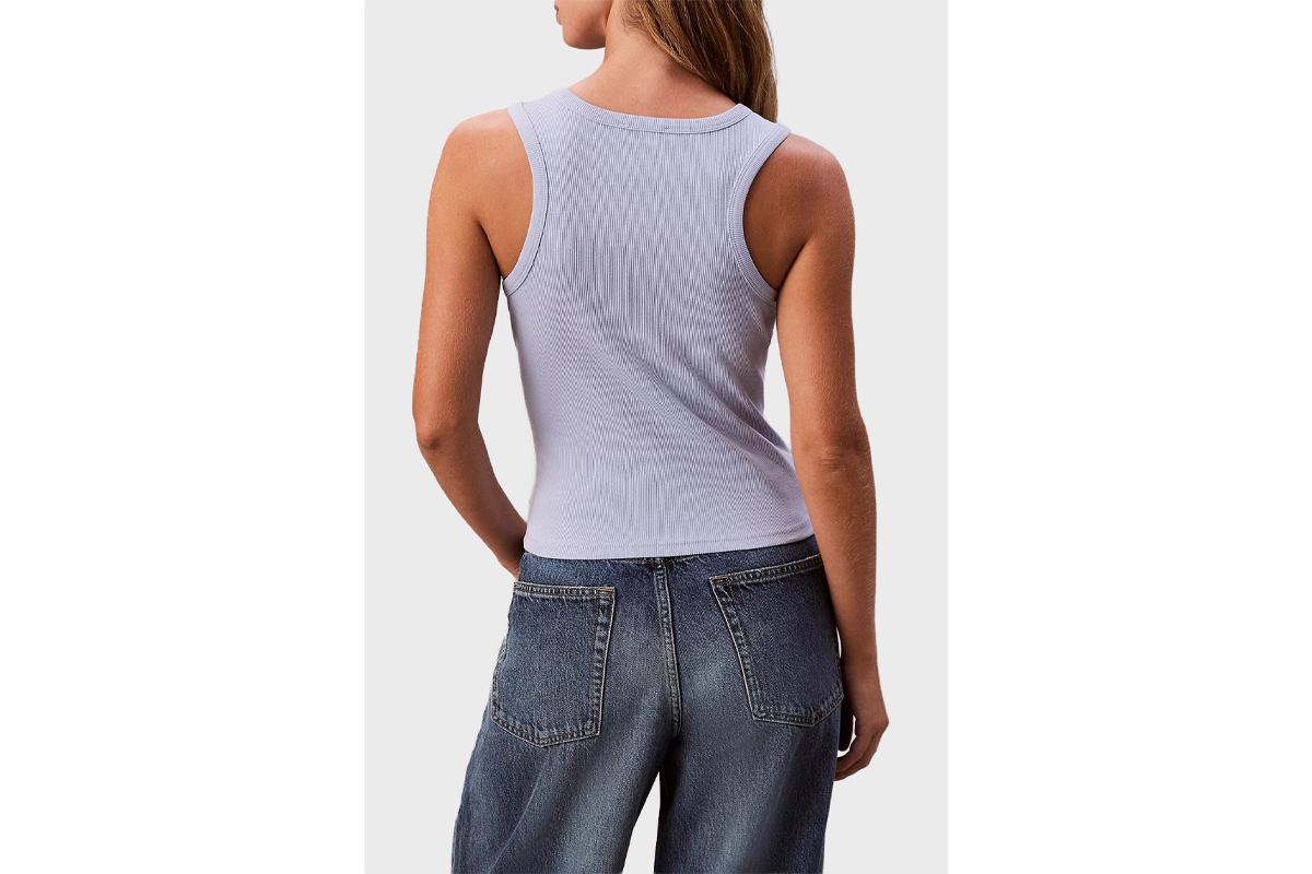 NEW IN! Calvin Klein Cotton Stretch Rib Γυναικεία Αμάνικη Μπλούζα Λιλά
