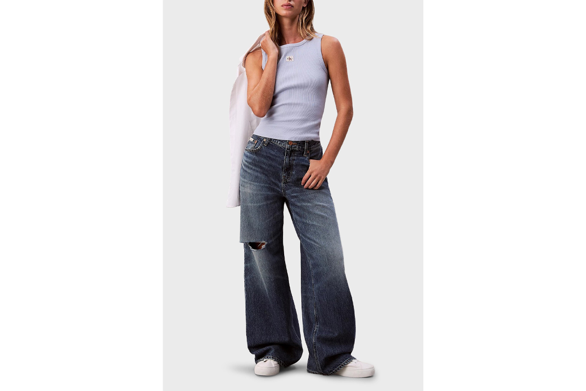 Το διακριτικό λογότυπο Calvin Klein στο στήθος προσθέτει ένα στοιχείο κομψότητας που ενισχύει τη μίνιμαλ αισθητική του κομματιού.