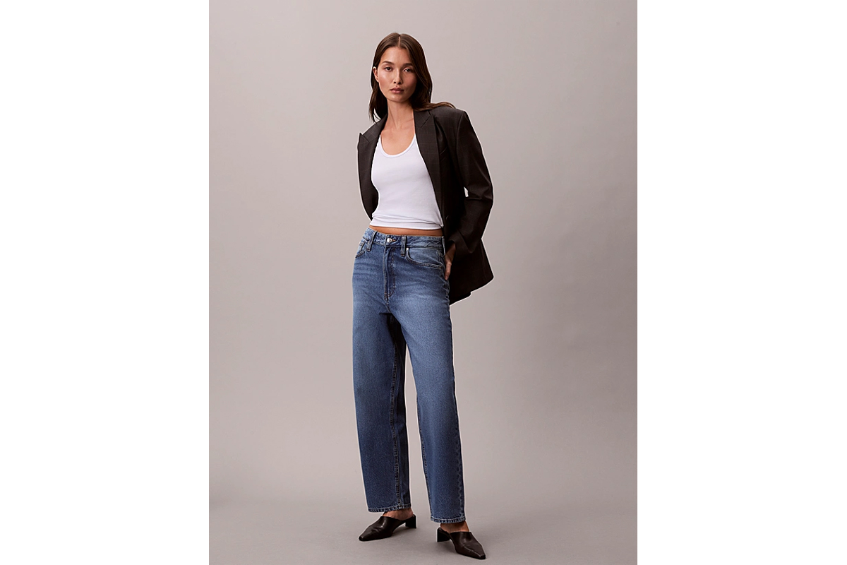 Το Calvin Klein Barrel Fit γυναικείο παντελόνι τζιν σε μπλε χρώμα συνδυάζει μοντέρνο στυλ και άνεση, προσφέροντας casual κομψότητα για καθημερινές εμφανίσεις.