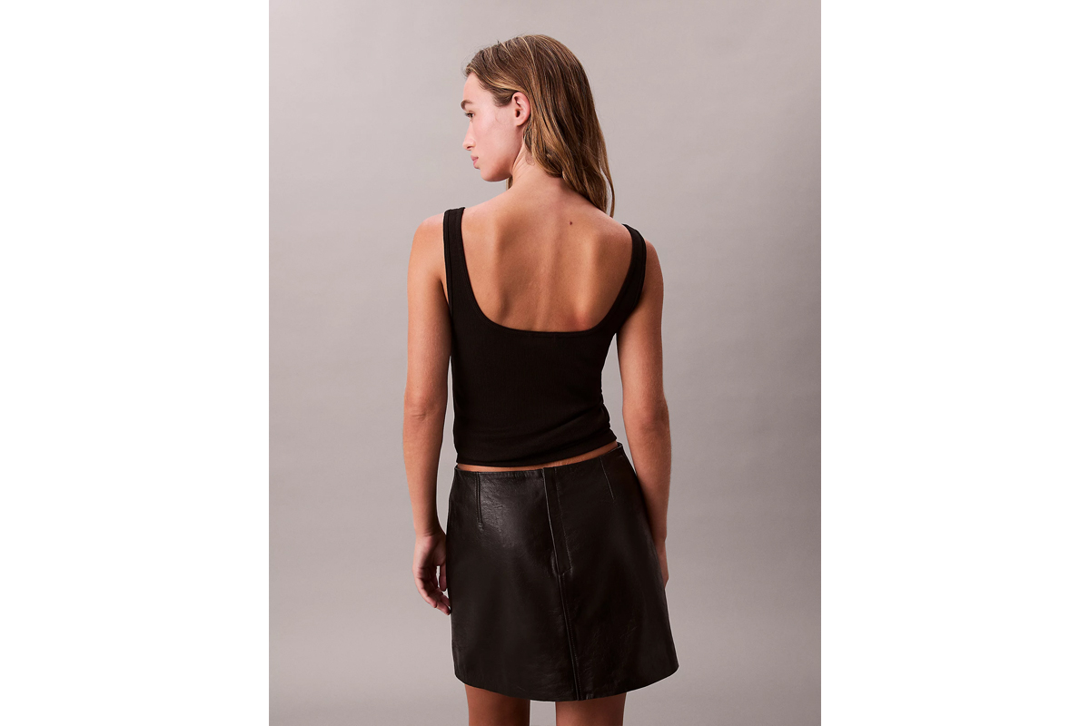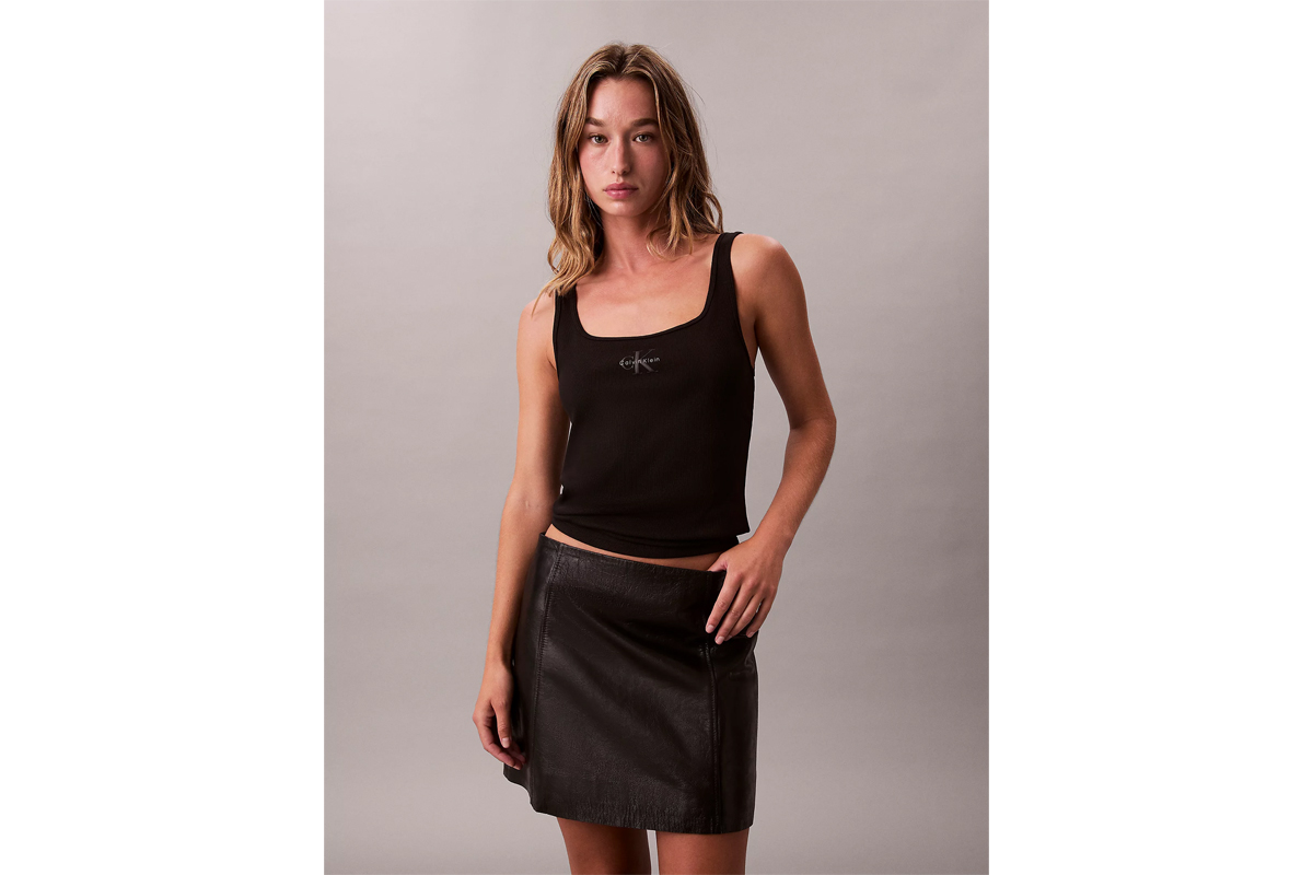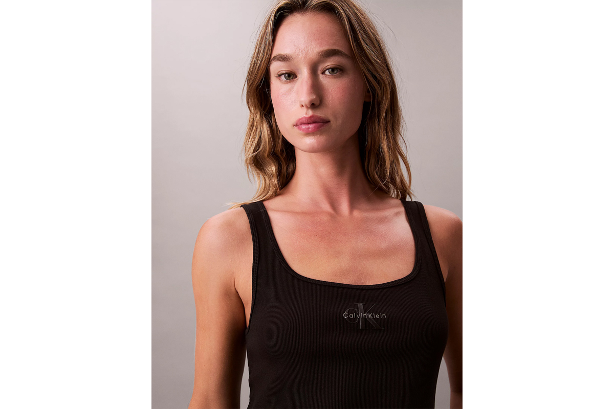 Ανακάλυψε το Calvin Klein Slim Ribbed Cotton γυναικείο αμάνικο top σε μαύρο χρώμα και πρόσθεσε στη γκαρνταρόμπα σου ένα διαχρονικό κομμάτι που συνδυάζει κομψότητα, άνεση και σύγχρονο minimal στυλ.