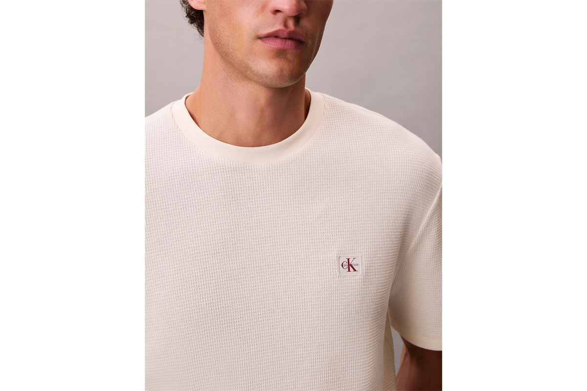 Αναβάθμισε τις καθημερινές σου εμφανίσεις με το Calvin Klein Classic Waffle ανδρικό κοντομάνικο T-Shirt σε εκρού χρώμα, ένα βασικό κομμάτι που συνδυάζει άνεση, λειτουργικότητα και διαχρονικό στυλ.