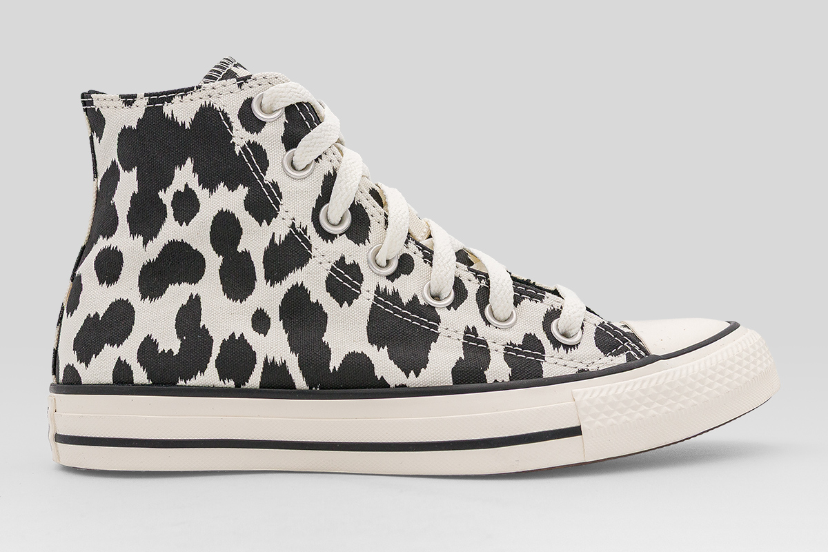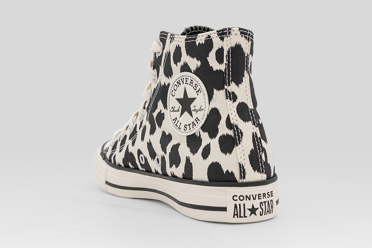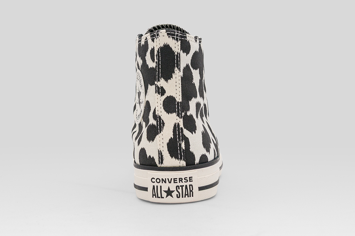 Το screen-printed cow print δίνει χαρακτήρα και μοναδικότητα, ενώ το debossed faux leather patch με το κλασικό όνομα Chuck Taylor ολοκληρώνει το αυθεντικό look.