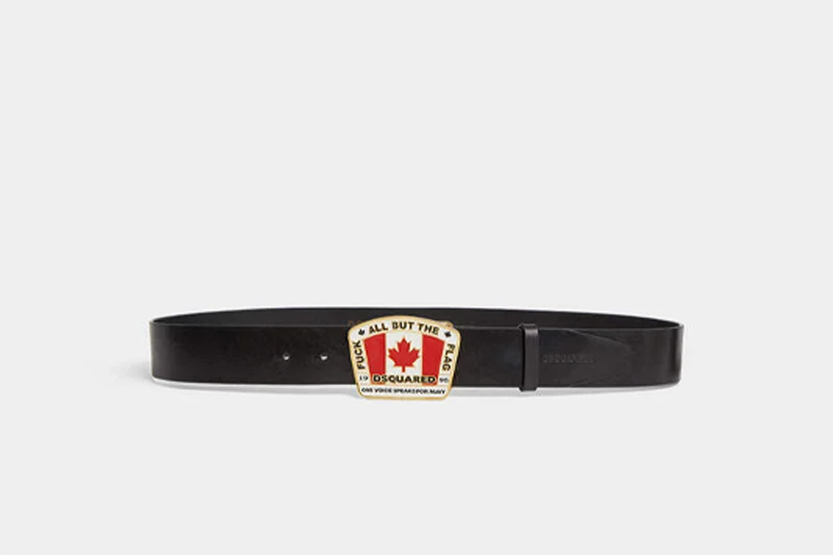 Αναβάθμισε το στυλ σου με την Dsquared2 Canadian Flag Plaque ανδρική δερμάτινη ζώνη, ένα μοναδικό αξεσουάρ που συνδυάζει την πολυτέλεια με την πρακτικότητα.