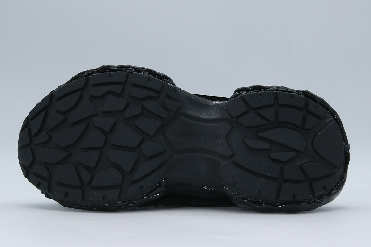 Η χειροποίητη τρισδιάστατη σόλα, με το χαρτογραφημένο κείμενο και τα υφασμάτινα ένθετα με λογότυπο, αποκαλύπτει τη λεπτομέρεια και την τεχνογνωσία πίσω από κάθε ζευγάρι Dsquared2.