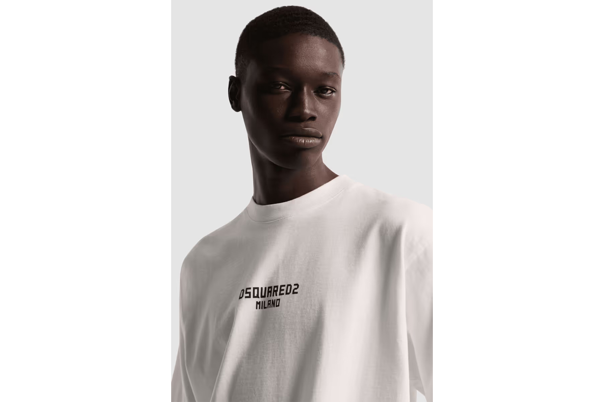 Στο μπροστινό μέρος, το γραφικό τύπωμα DSQUARED2 MILANO ξεχωρίζει, αναδεικνύοντας τον σύγχρονο χαρακτήρα του brand.