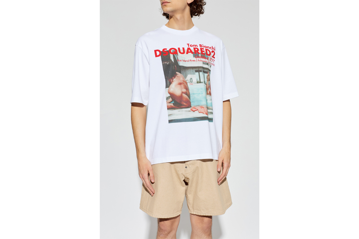 Η συνεργασία με τον Tom Bianchi αποτυπώνεται μέσα από το μεγάλο τύπωμα στο στήθος, το οποίο λειτουργεί ως κεντρικό στοιχείο και δίνει στο Dsquared2 μπλουζάκι ξεκάθαρη ταυτότητα.