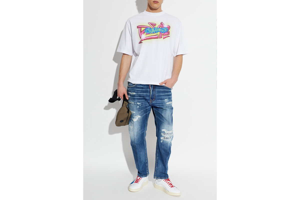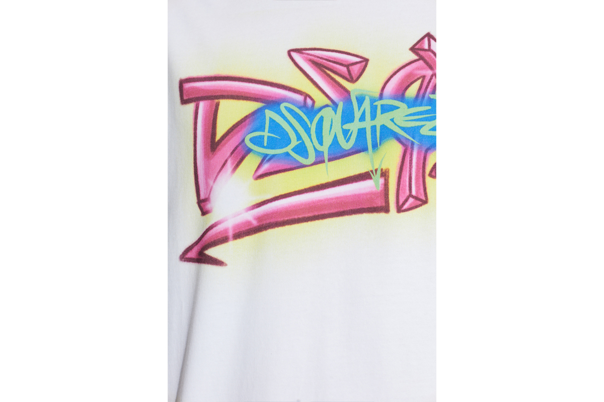 Το εντυπωσιακό πολύχρωμο τύπωμα εμπνευσμένο από graffiti με 3D εφέ στο μπροστινό μέρος τραβάει όλα τα βλέμματα, ενώ η υπογραφή της Dsquared2 ενσωματώνεται με στυλ και διακριτική πολυτέλεια.