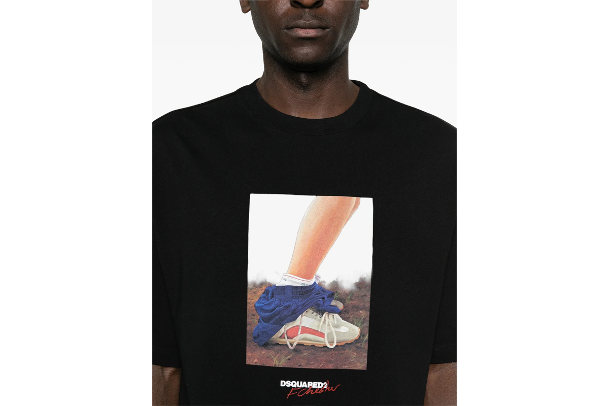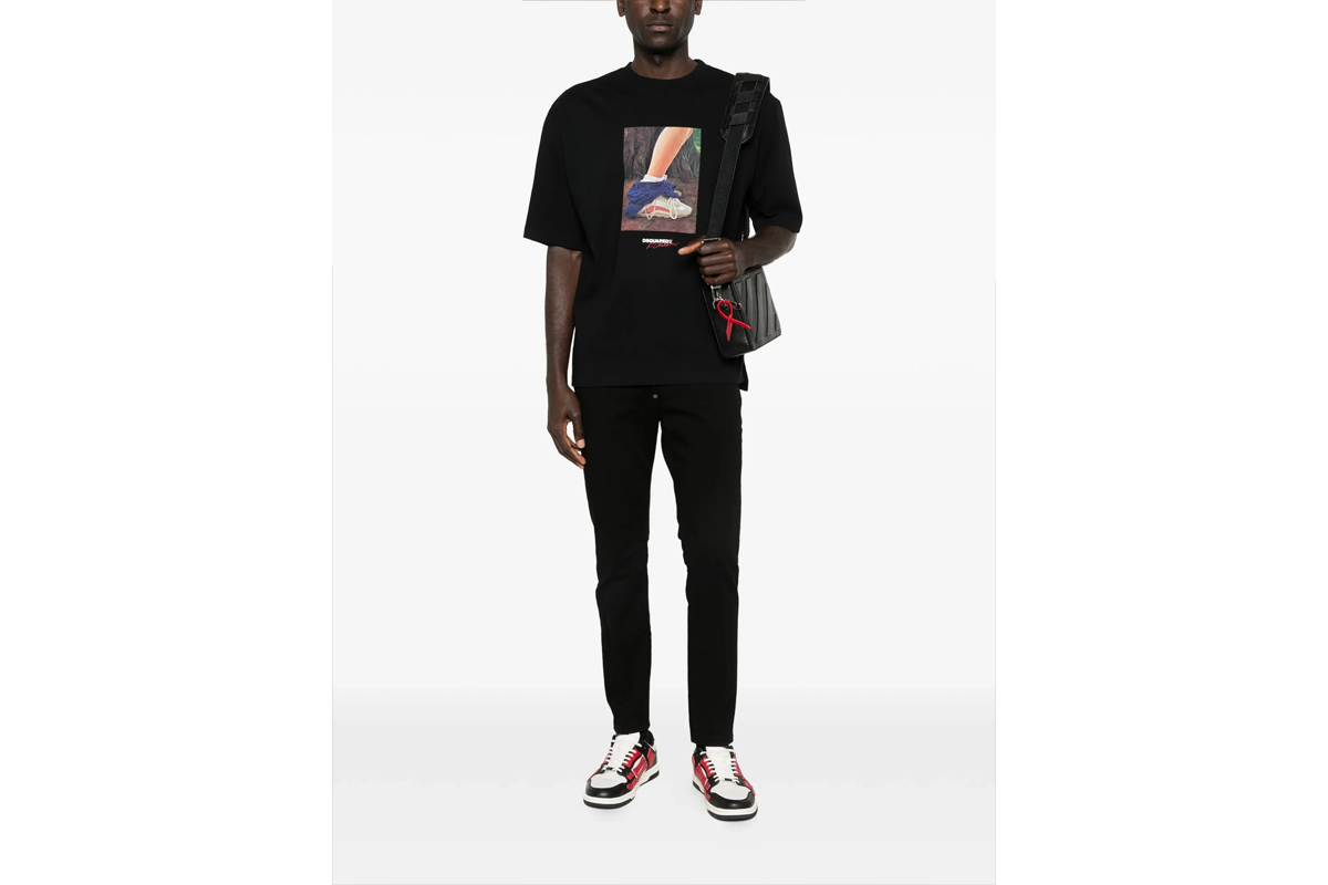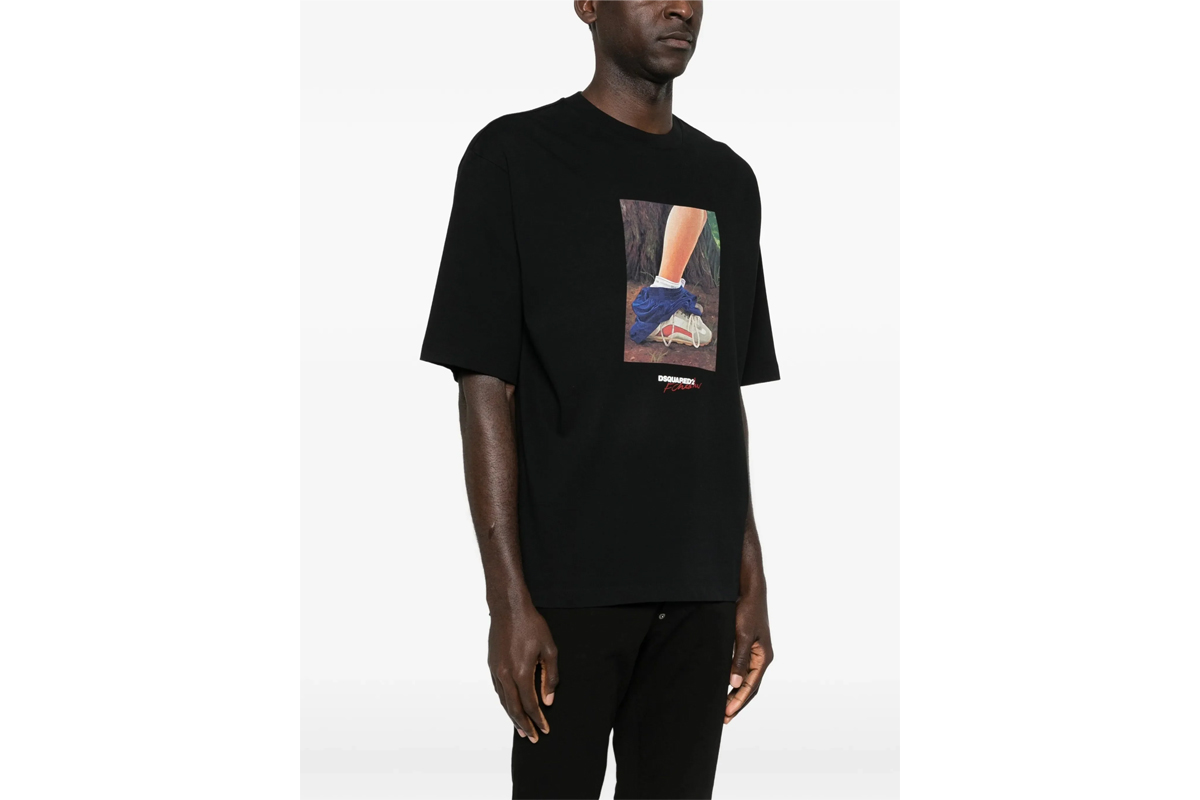 Αναβάθμισε το casual στυλ σου με αυτό το μοναδικό ανδρικό κοντομάνικο T-shirt της Dsquared2, σε συνεργασία με τον καλλιτέχνη Felix Chesher.
