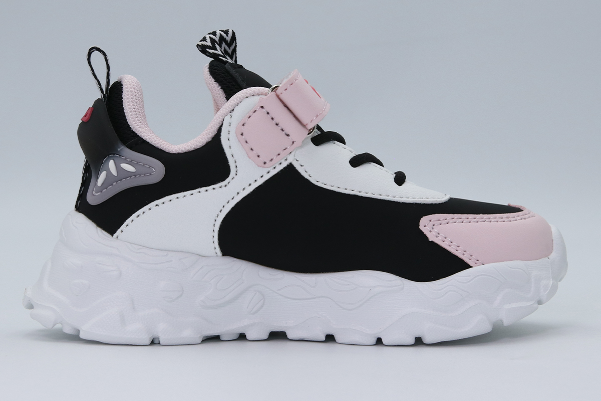 Η ελαφριά και εύκαμπτη κατασκευή τους βοηθά το παιδί να τρέχει, να πηδά και να παίζει με άνεση, ενώ τα μοντέρνα σχέδια σε ροζ, μαύρο και λευκό χρώμα κάνουν αυτά τα sneakers ξεχωριστά και εντυπωσιακά.
