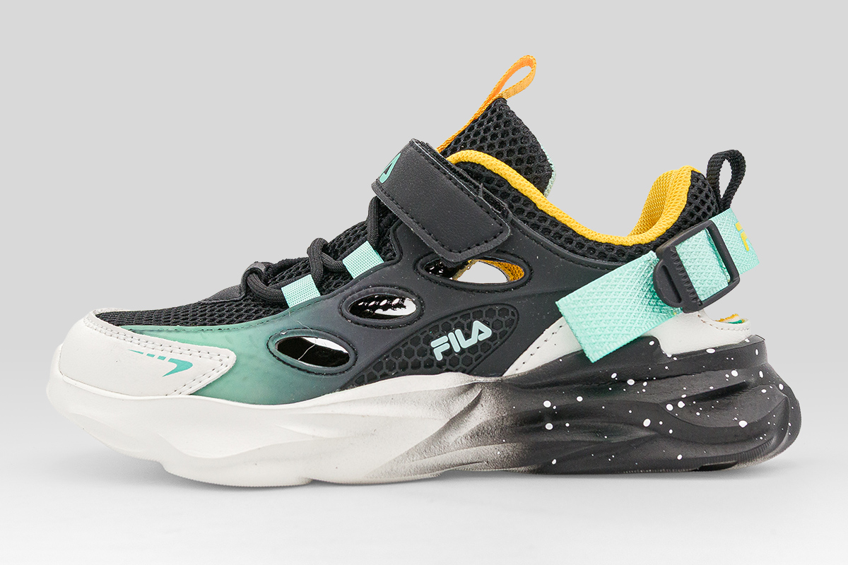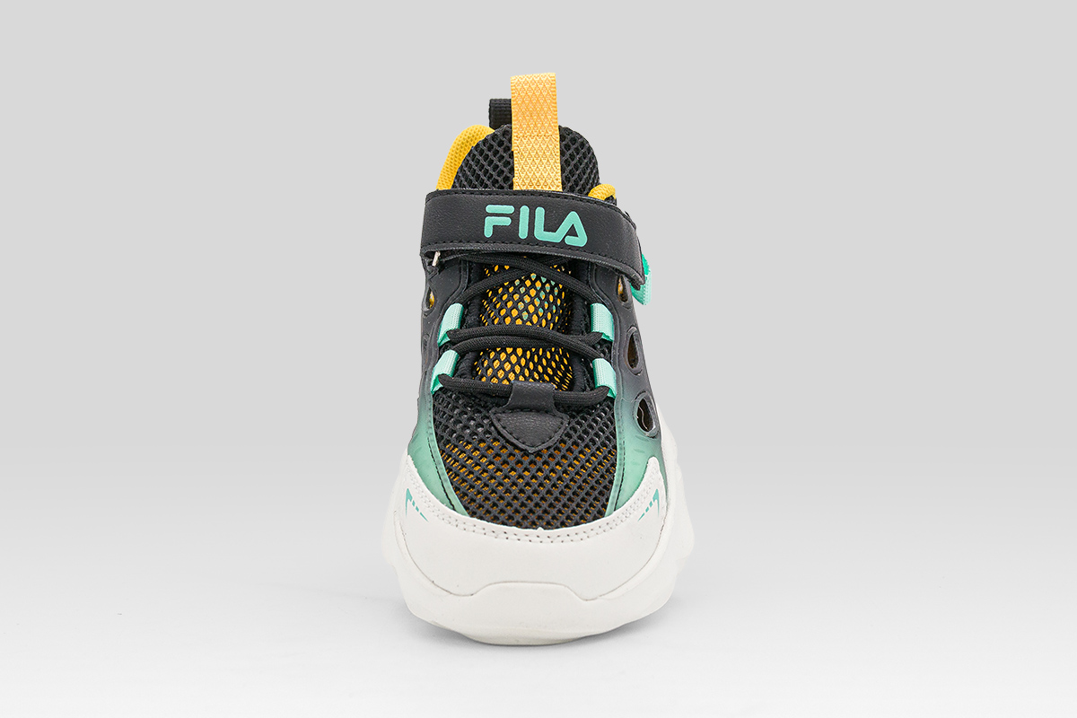Άνεση, πρακτικότητα και παιχνιδιάρικο στυλ συνδυάζονται στα Fila Wave Memory Velcro παιδικά sneakers σε μαύρο, κίτρινο, λευκό και τυρκουάζ χρώμα.