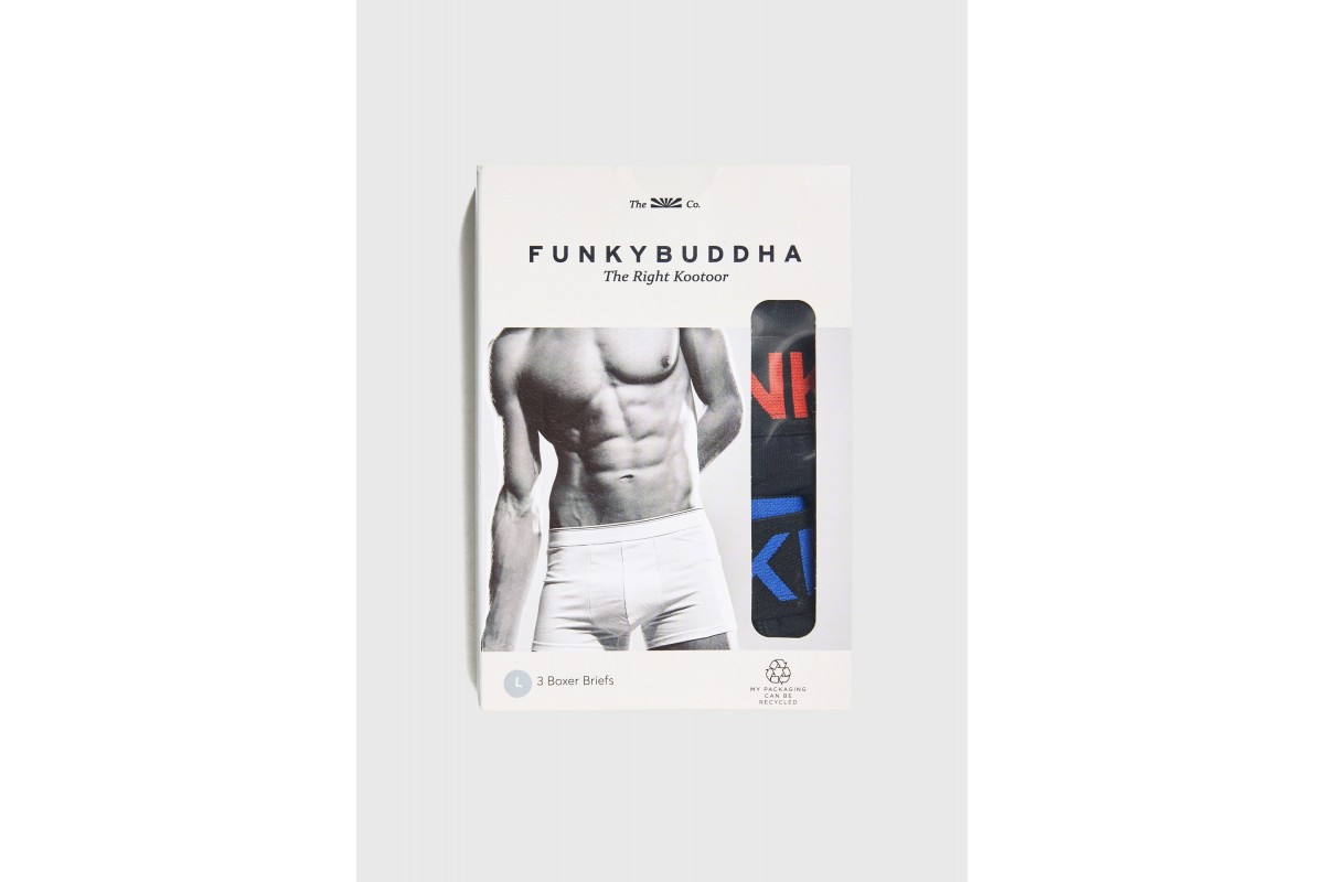 Το Funky Buddha λογότυπο στο λάστιχο δίνει αυθεντικό χαρακτήρα και ολοκληρώνει το minimal design, ενώ η συσκευασία των 3 τεμαχίων σου εξασφαλίζει πρακτικότητα και καθημερινή ευκολία.