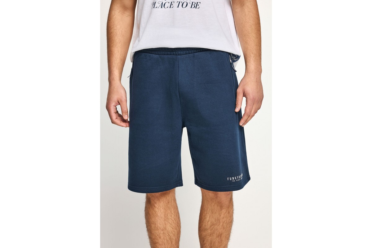 Απόλαυσε άνεση και σύγχρονη αισθητική στην καθημερινότητά σου με την ανδρική αθλητική βερμούδα Funky Buddha σε μπλε σκούρο χρώμα.