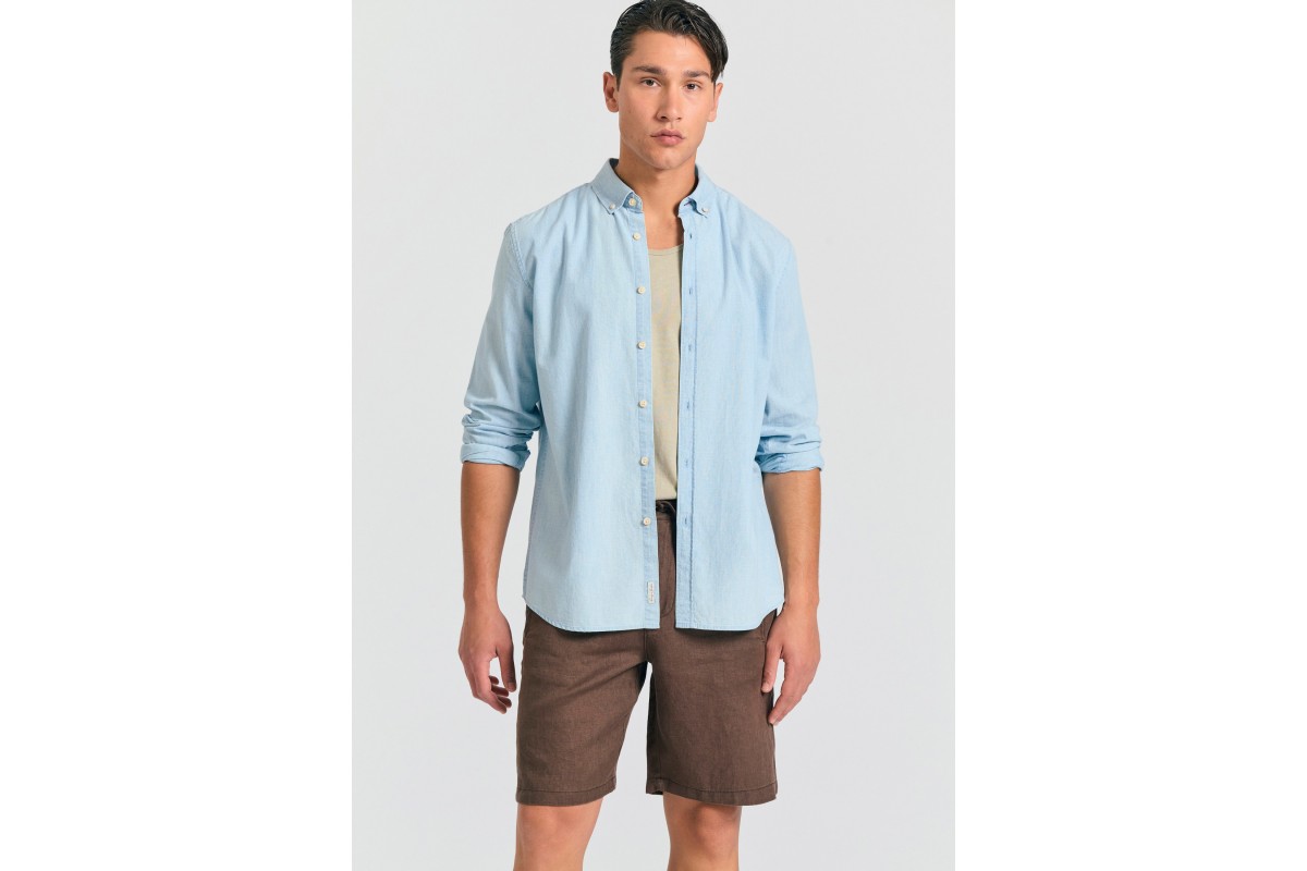 Funky Buddha Garment Dyed Linen Βερμούδα Casual Ανδρική (FBM011-009-03-COFFEE)