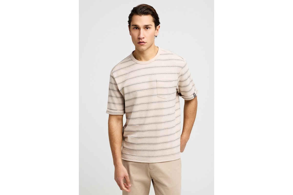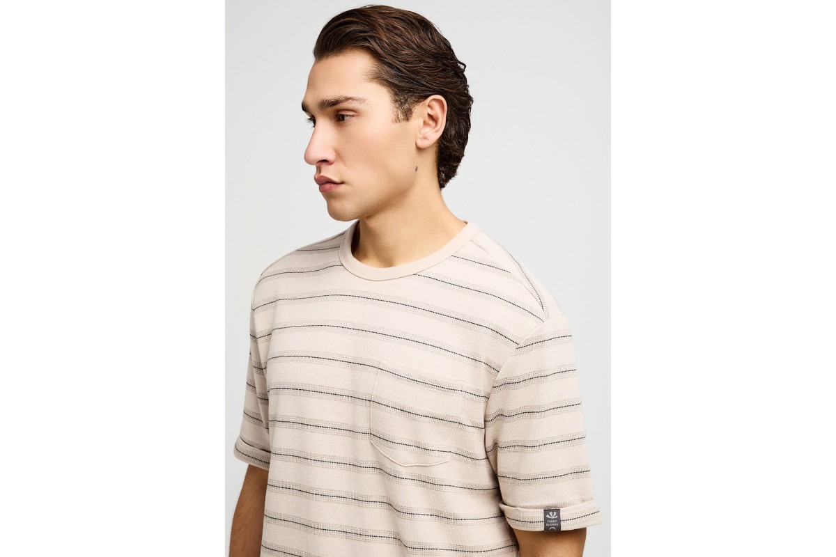 Δώσε χαρακτήρα στο καθημερινό σου στυλ με το Funky Buddha ανδρικό κοντομάνικο T-Shirt σε μπεζ απόχρωση, ένα κομμάτι που συνδυάζει άνεση και μοντέρνα αισθητική.
