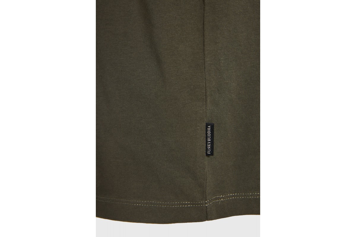 Αναβάθμισε το καθημερινό σου στυλ με την Funky Buddha ανδρική κοντομάνικη μπλούζα σε λαδί χρώμα, ένα κομμάτι-βάση που δεν πρέπει να λείπει από την γκαρνταρόμπα σου.