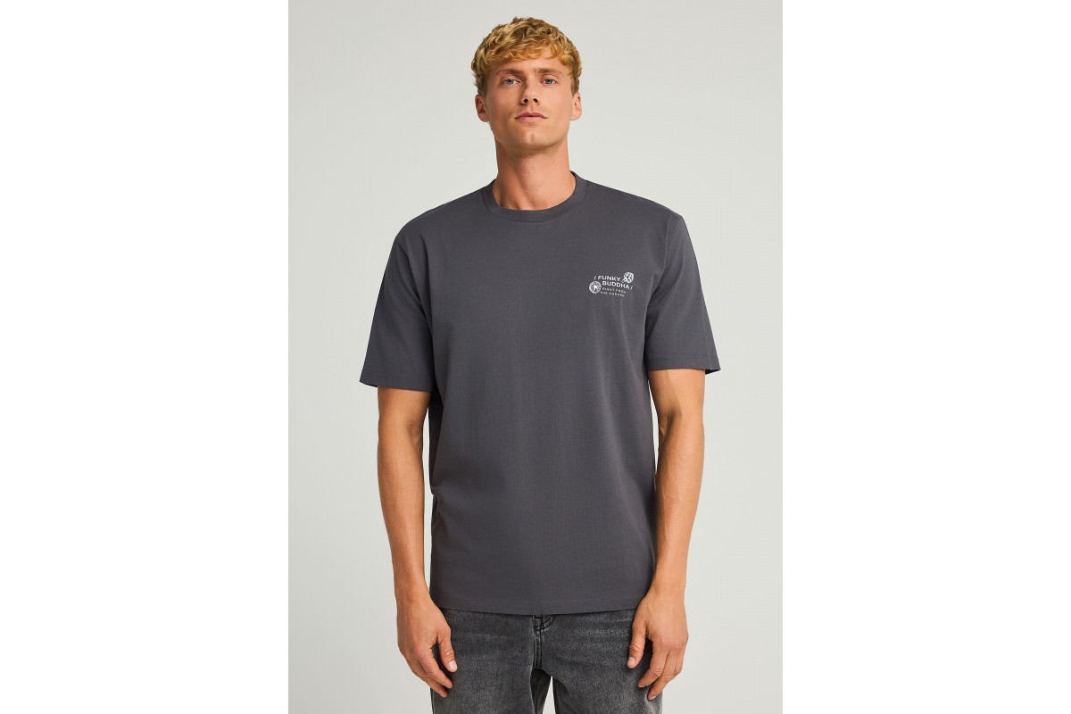 Ανανέωσε τη ντουλάπα σου με το Funky Buddha ανδρικό κοντομάνικο T-shirt σε γκρι σκούρο χρώμα, που συνδυάζει απλότητα, ποιότητα και μοντέρνα αισθητική.