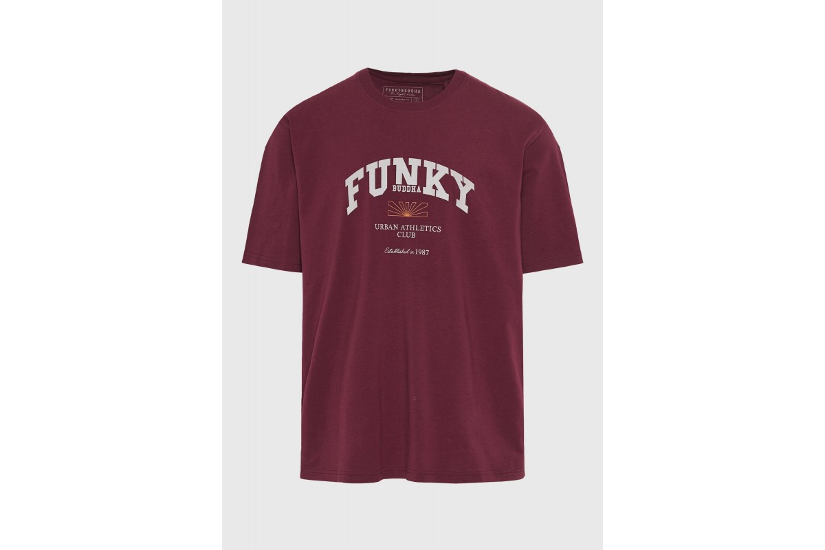 Funky Buddha Ανδρική Μπλούζα Με Κοντό Μανίκι Και Τύπωμα (FBM012-022-04-MERLOT)