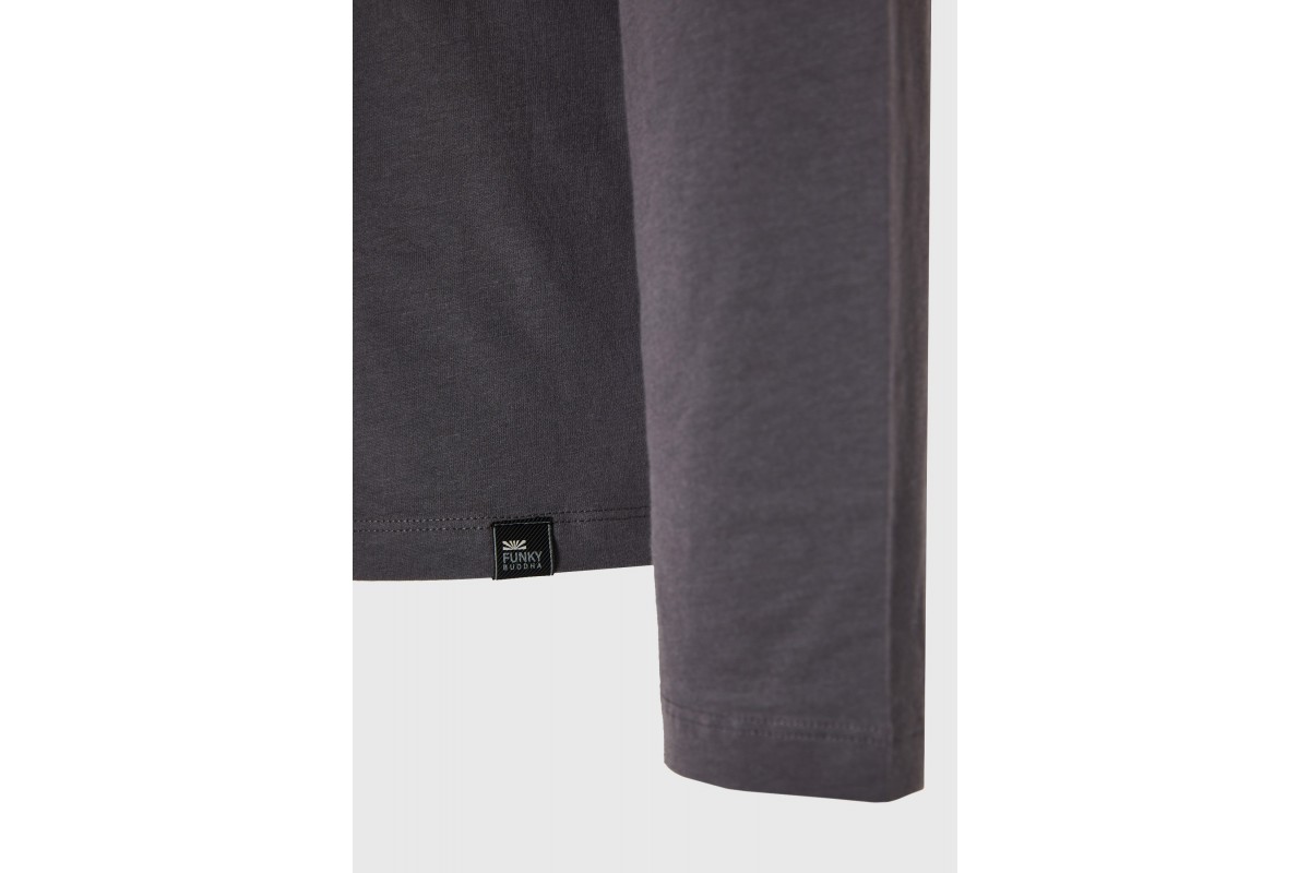 Ανανέωσε το καθημερινό σου στυλ με την Funky Buddha ανδρική μακρυμάνικη μπλούζα σε γκρι χρώμα, ένα κομμάτι που δεν πρέπει να λείπει από την γκαρνταρόμπα σου.