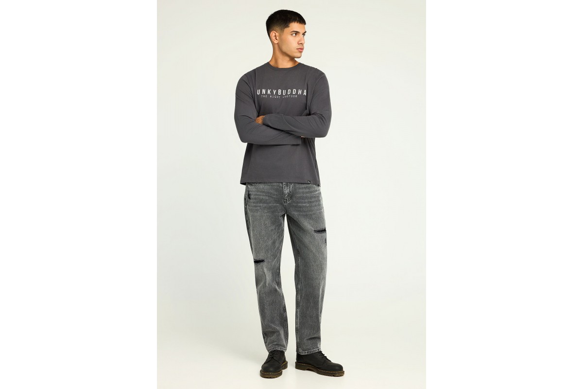 NEW IN! Funky Buddha Ανδρική Μακρυμάνικη Μπλούζα Γκρι