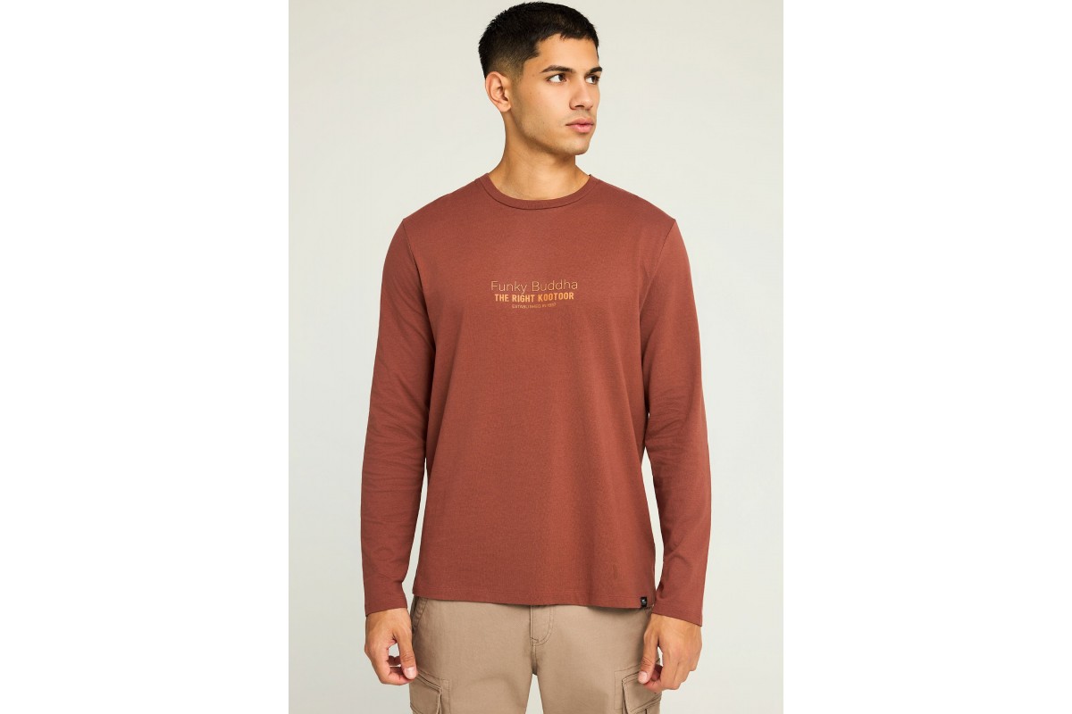 Funky Buddha Ανδρική Μακρυμάνικη Μπλούζα Κεραμιδί