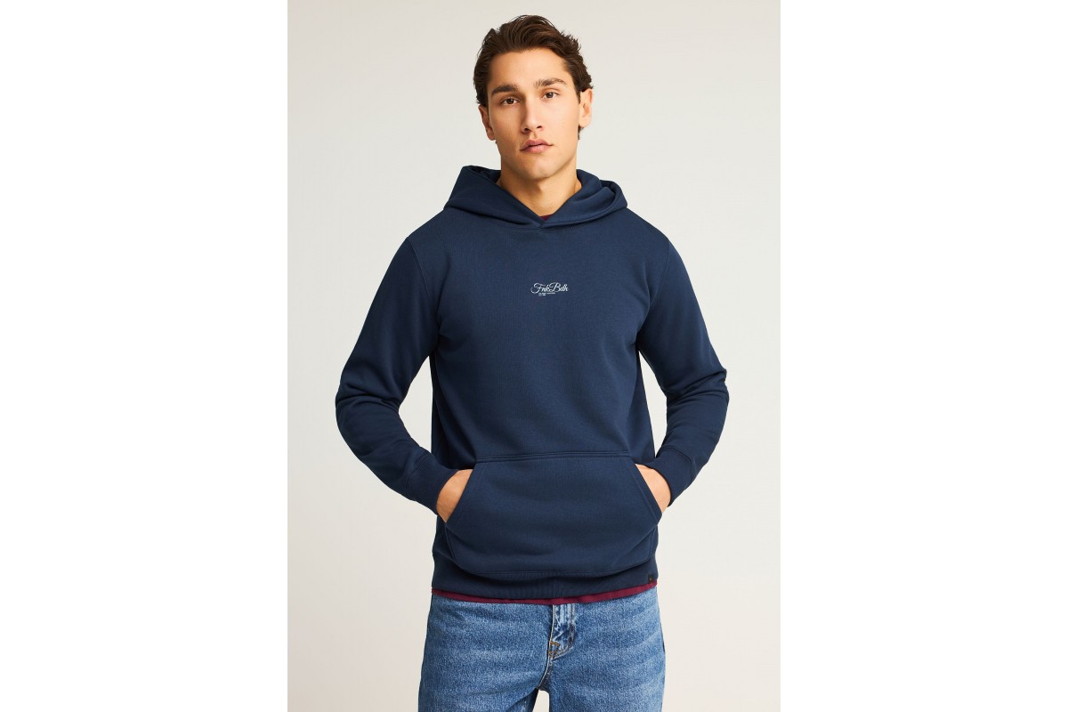 Το Funky Buddha ανδρικό φούτερ με κουκούλα σε μπλε σκούρο χρώμα συνδυάζει πρακτικότητα, μοντέρνο design και άνεση τις δροσερές μέρες του φθινοπώρου και του χειμώνα.