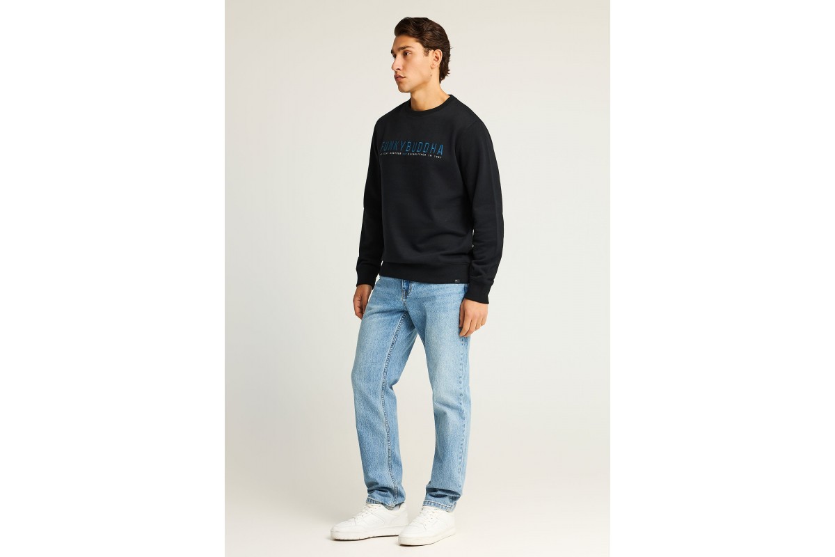 NEW IN! Funky Buddha Ανδρική Μακρυμάνικη Μπλούζα με Λαιμόκοψη Μαύρη