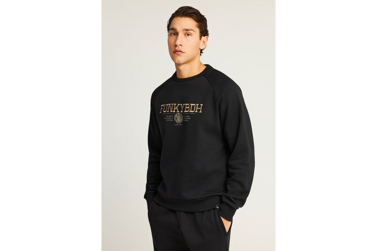 NEW IN! Funky Buddha Ανδρική Μακρυμάνικη Μπλούζα με Λαιμόκοψη Μαύρη