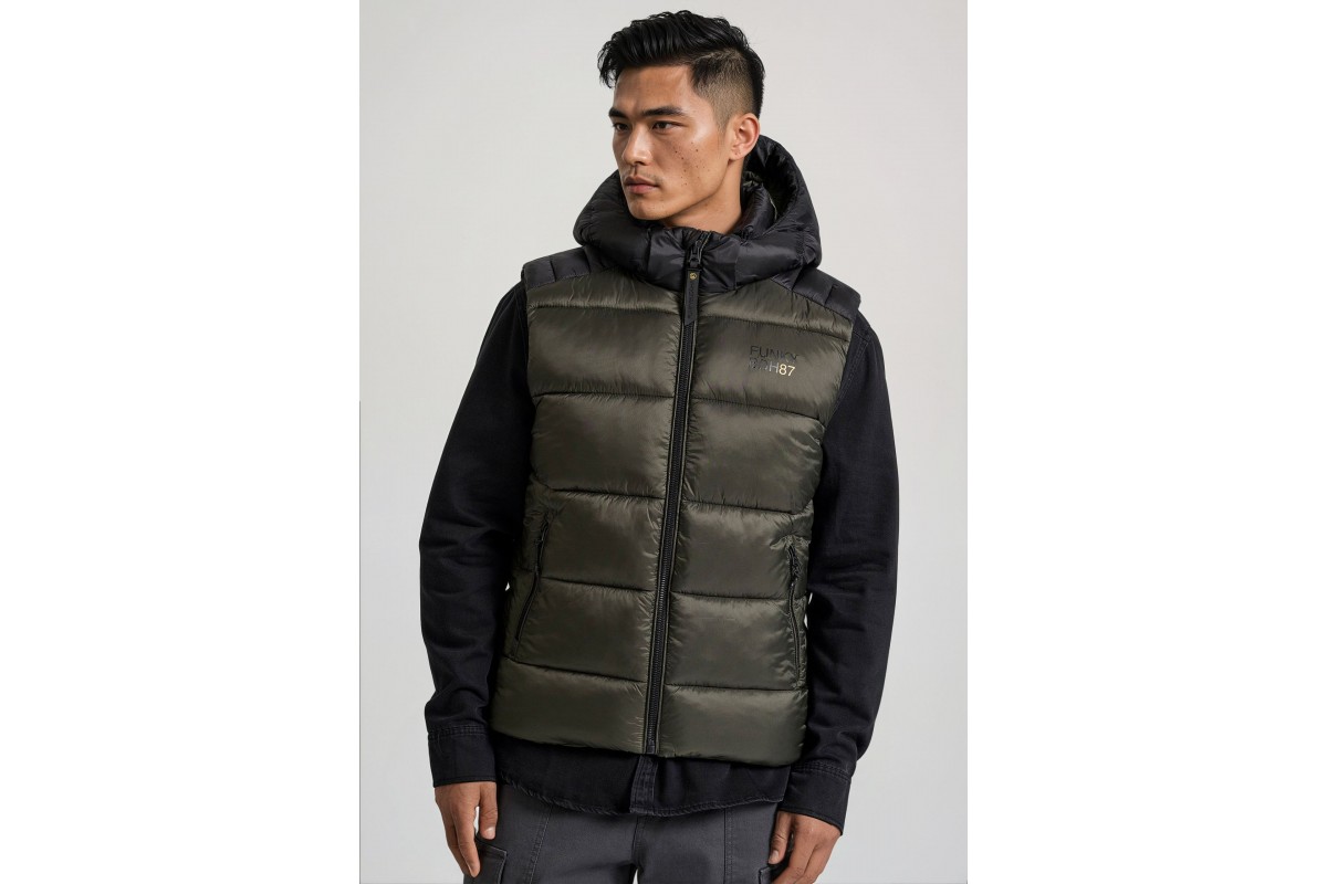 Αναβάθμισε την γκαρνταρόμπα σου με το χακί μπουφάν γιλέκο της Funky Buddha.