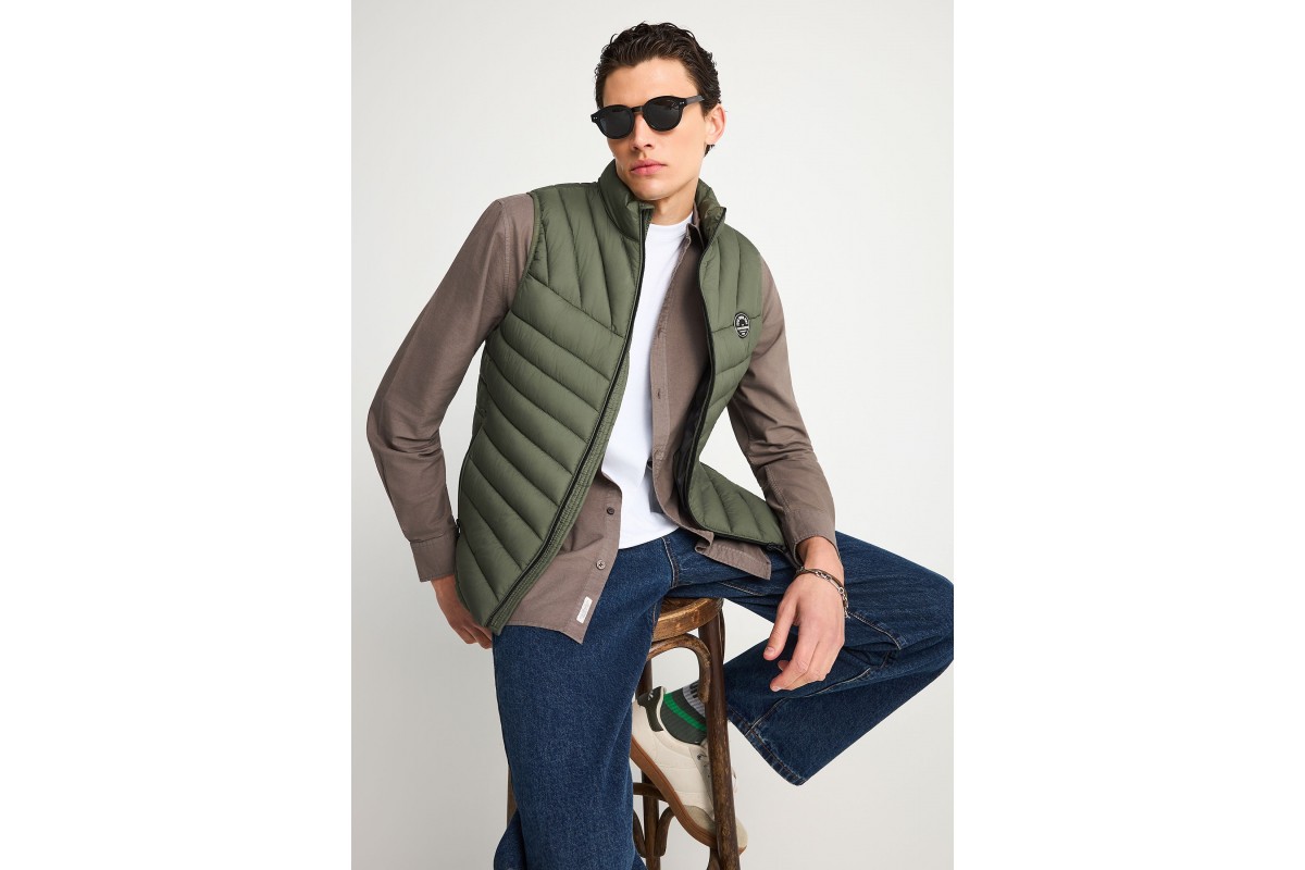 Η ελαφριά επένδυση προσθέτει επιπλέον άνεση, ενώ η regular fit γραμμή εξασφαλίζει σωστή εφαρμογή που φοριέται εύκολα πάνω από φούτερ, πουκάμισο ή μακρυμάνικο μπλουζάκι.