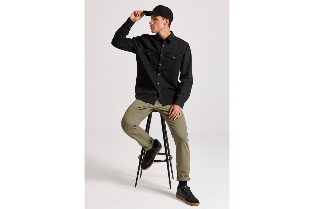 Το χακί χρώμα του κάνει αυτό το βαμβακερό παντελόνι να ξεχωρίζει και να προσδίδει ενδιαφέρον σε κάθε σύνολο.