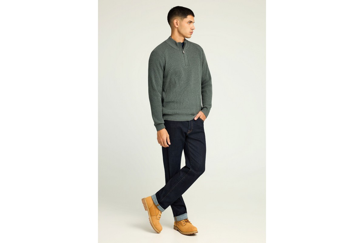 Το Funky Buddha ανδρικό πουλόβερ σε λαδί χρώμα είναι μια κομψή και πρακτική επιλογή για τις δροσερές μέρες του φθινοπώρου και του χειμώνα.