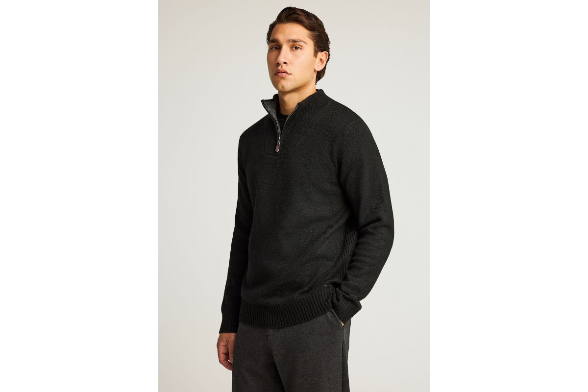 Πρόκειται για ένα μονόχρωμο πλεκτό half-zip πουλόβερ, ιδανικό για τις ψυχρές ημέρες του φθινοπώρου και του χειμώνα, που συνδυάζει τη ζεστασιά με το διαχρονικό ανδρικό στυλ.