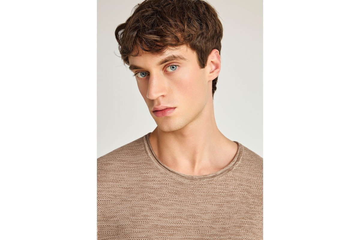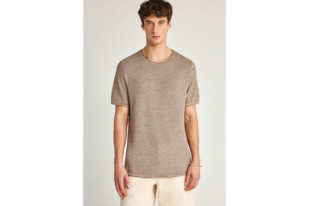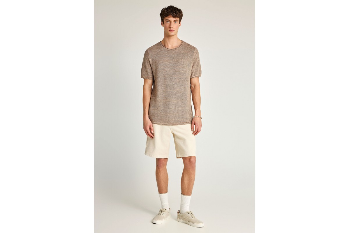 Funky Buddha Ανδρικό Πλεκτό Με Κοντό Μανίκι (FBM013-002-09-CIGAR-MEL)