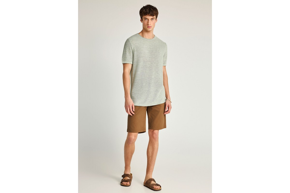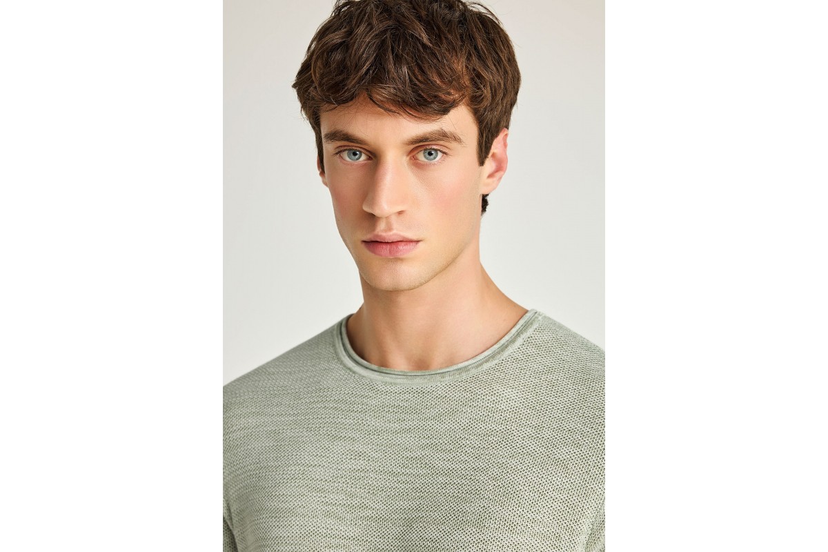 Funky Buddha Ανδρικό Πλεκτό Με Κοντό Μανίκι (FBM013-002-09-SAGE-GREEN-MEL)