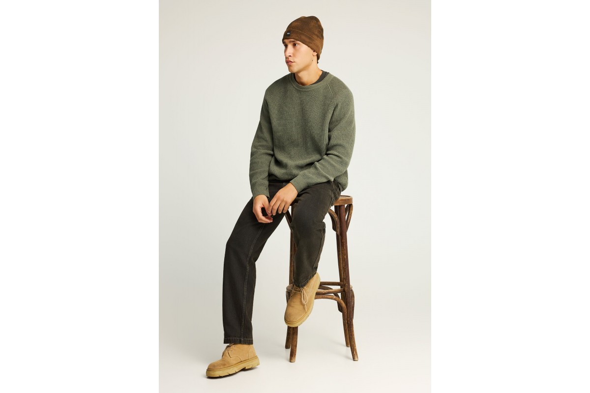 NEW IN! Funky Buddha Ανδρική Μακρυμάνικη Πλεκτή Μπλούζα Με Λαιμόκοψη Λαδί