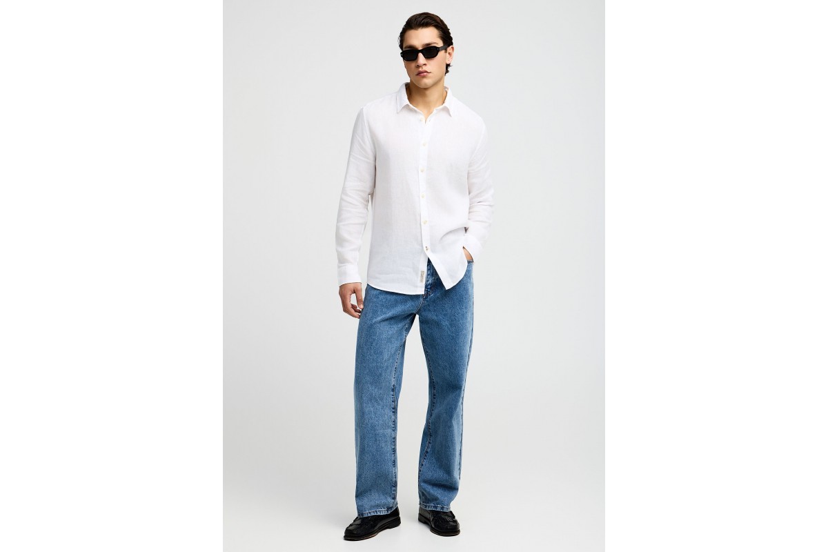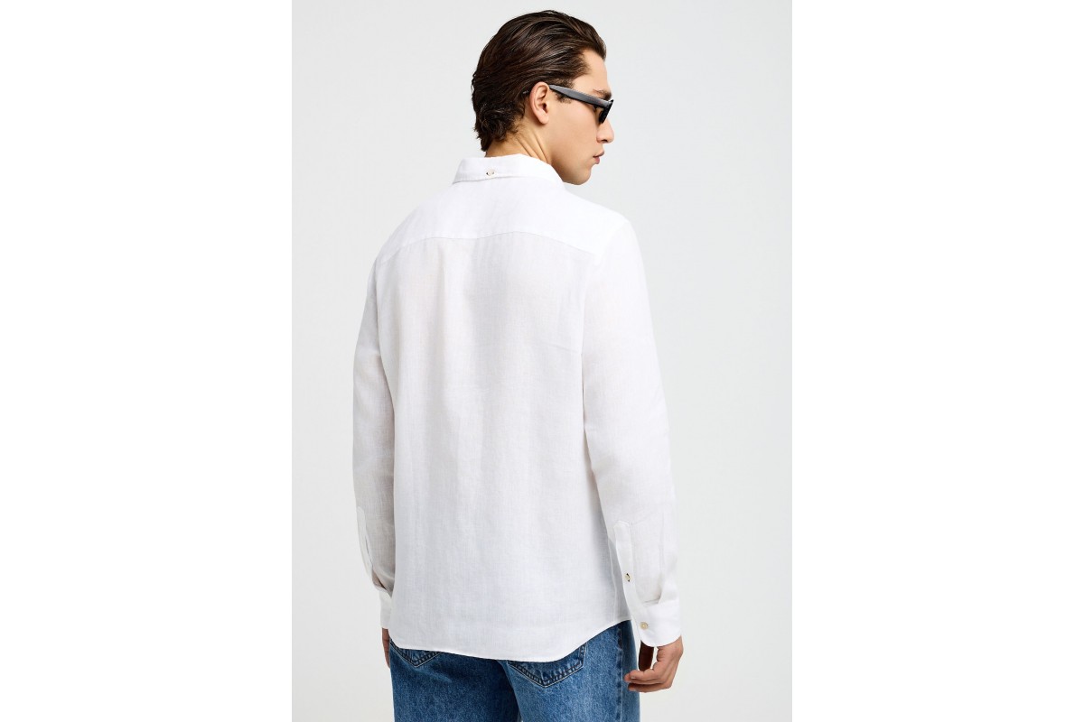Funky Buddha The Essentials Linen Πουκάμισο Μακρυμάνικο Ανδρικό (FBM013-001-05-WHITE)
