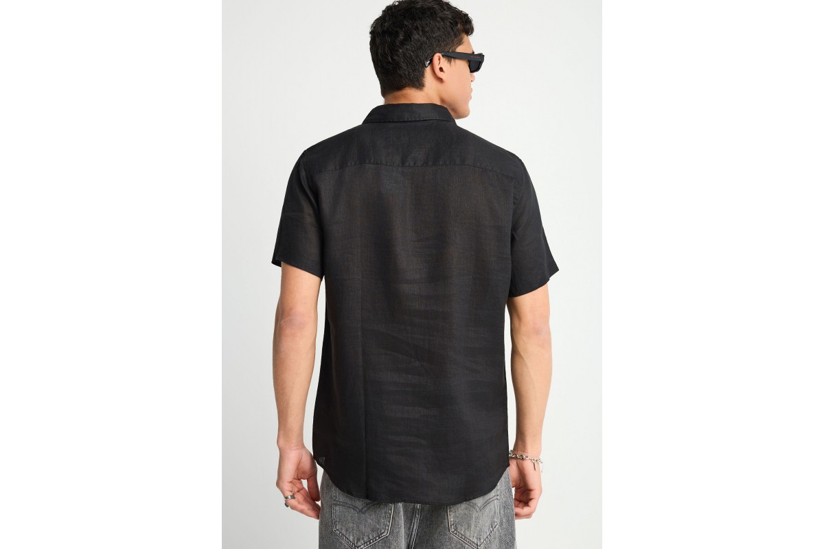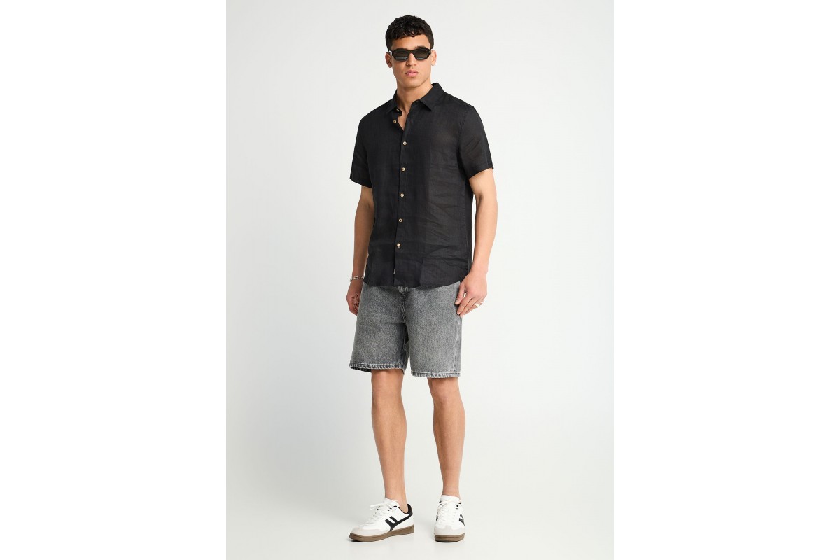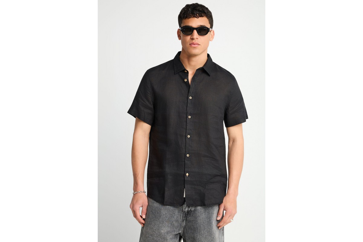 Funky Buddha The Essentials Linen Πουκάμισο Κοντομάνικο Ανδρικό (FBM013-002-05-BLACK)
