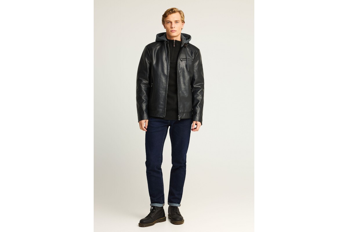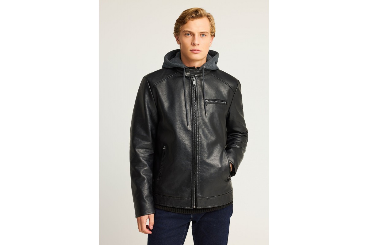 Αναβάθμισε τη χειμερινή σου γκαρνταρόμπα με το Funky Buddha ανδρικό μπουφάν δερματίνη με κουκούλα σε μαύρο χρώμα, ένα κομμάτι που συνδυάζει πρακτικότητα και σύγχρονη αισθητική.