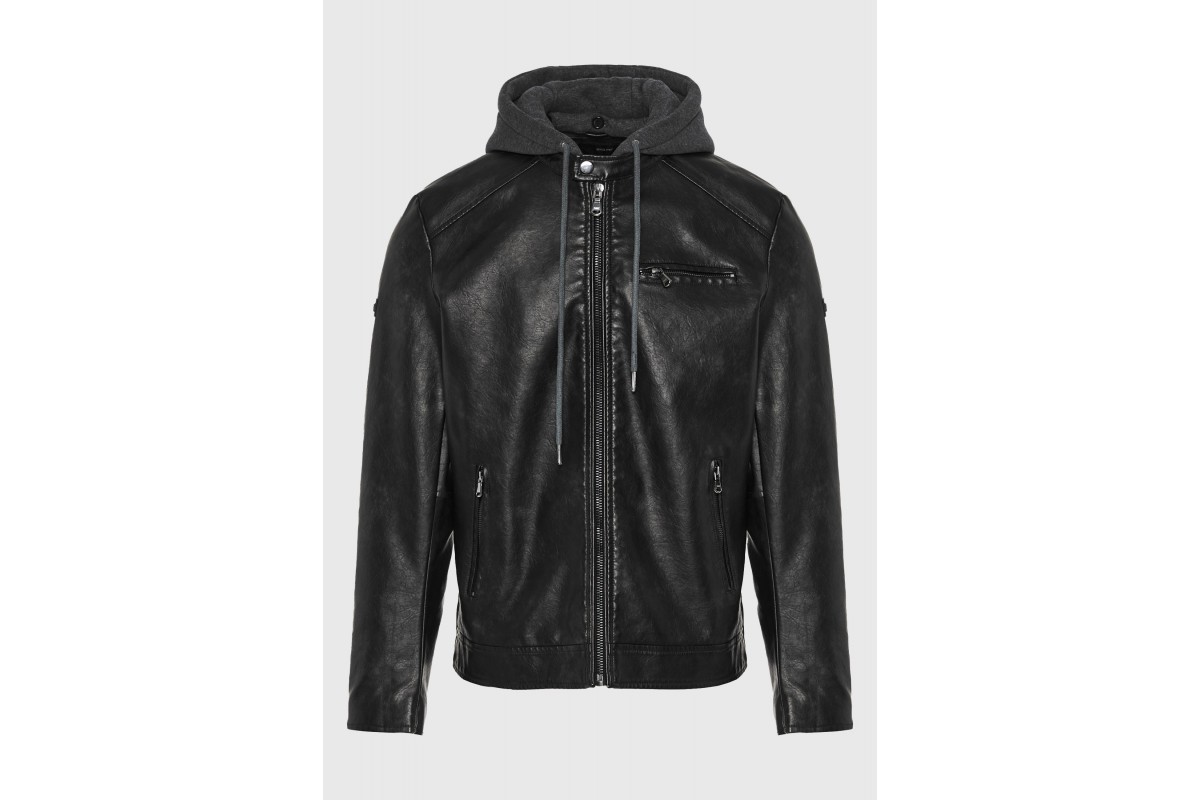 Funky Buddha Ανδρικό Biker Μπουφάν Δερματίνη με Κουκούλα Μαύρο